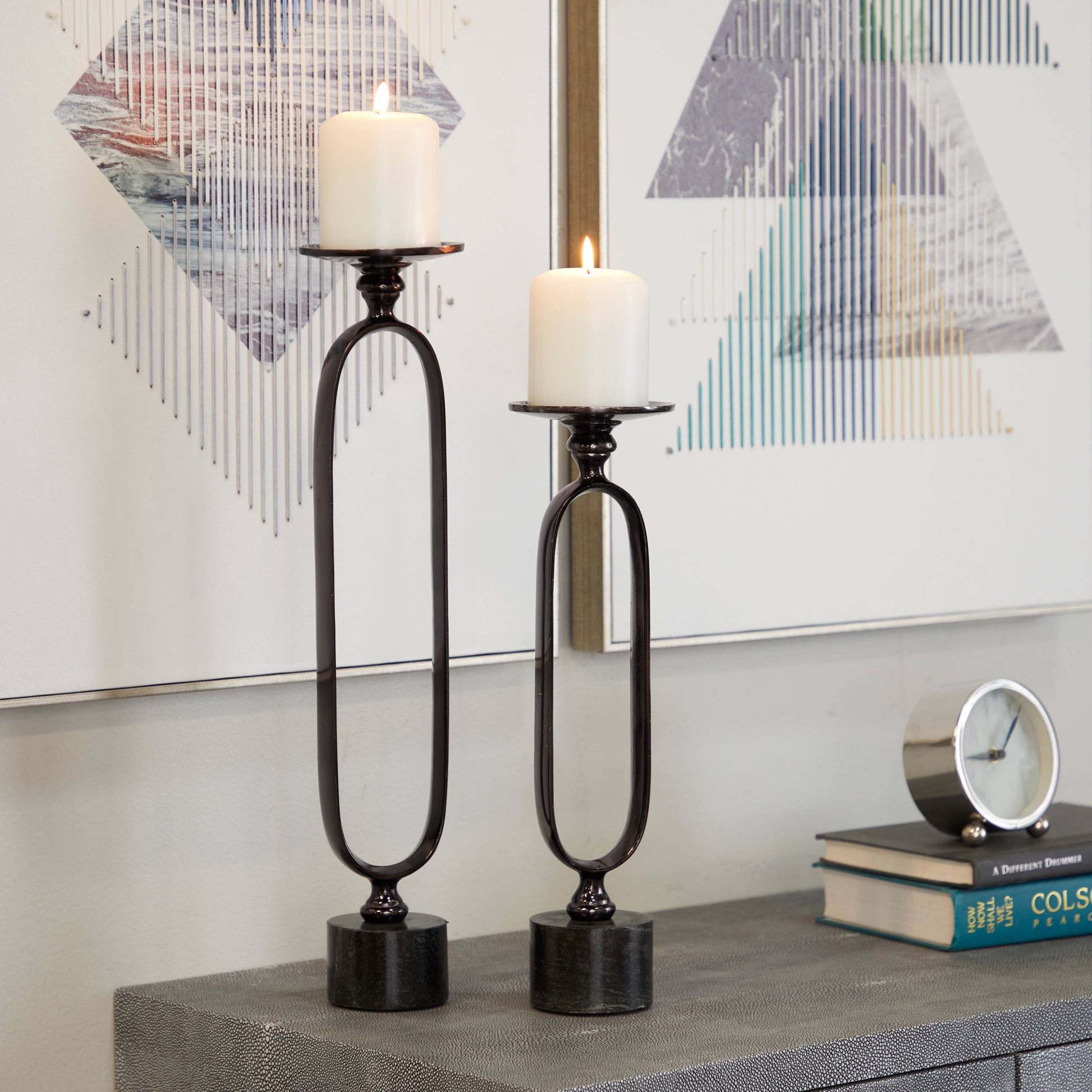 Black Aluminum & Marble Base Candle Holders
