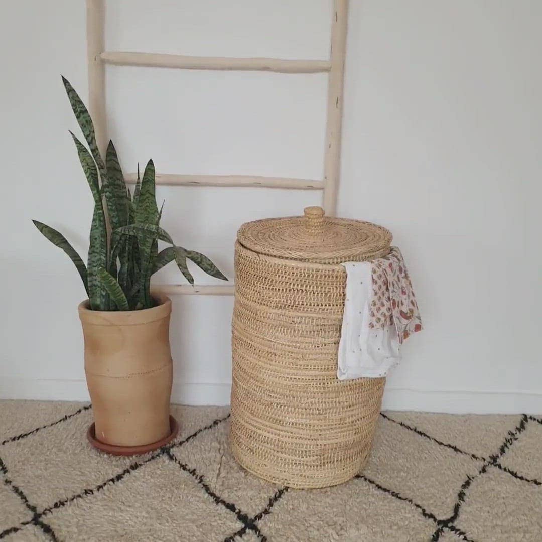 This sturdy and chic Palm laundry basket is suitable for every chic bathroom; this sizable handcrafted natural fiber basket is quite useful; it give you a great storage option that will fit in any part of your house, whether it's in the bedrooms or a child's room as toys storage. It is tightly braided in Moroccan palm leaves of high quality that make it last for a very long time and help the planet to breathe even more by reducing plastic use . SIZE 15WX14L