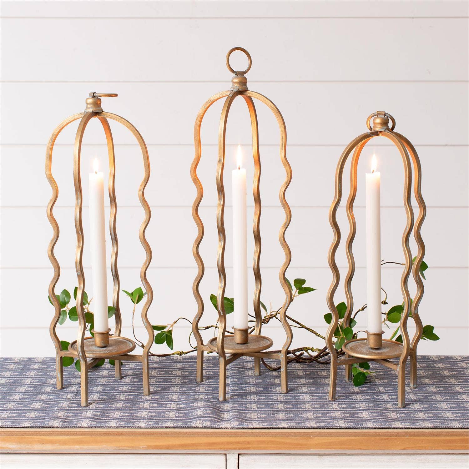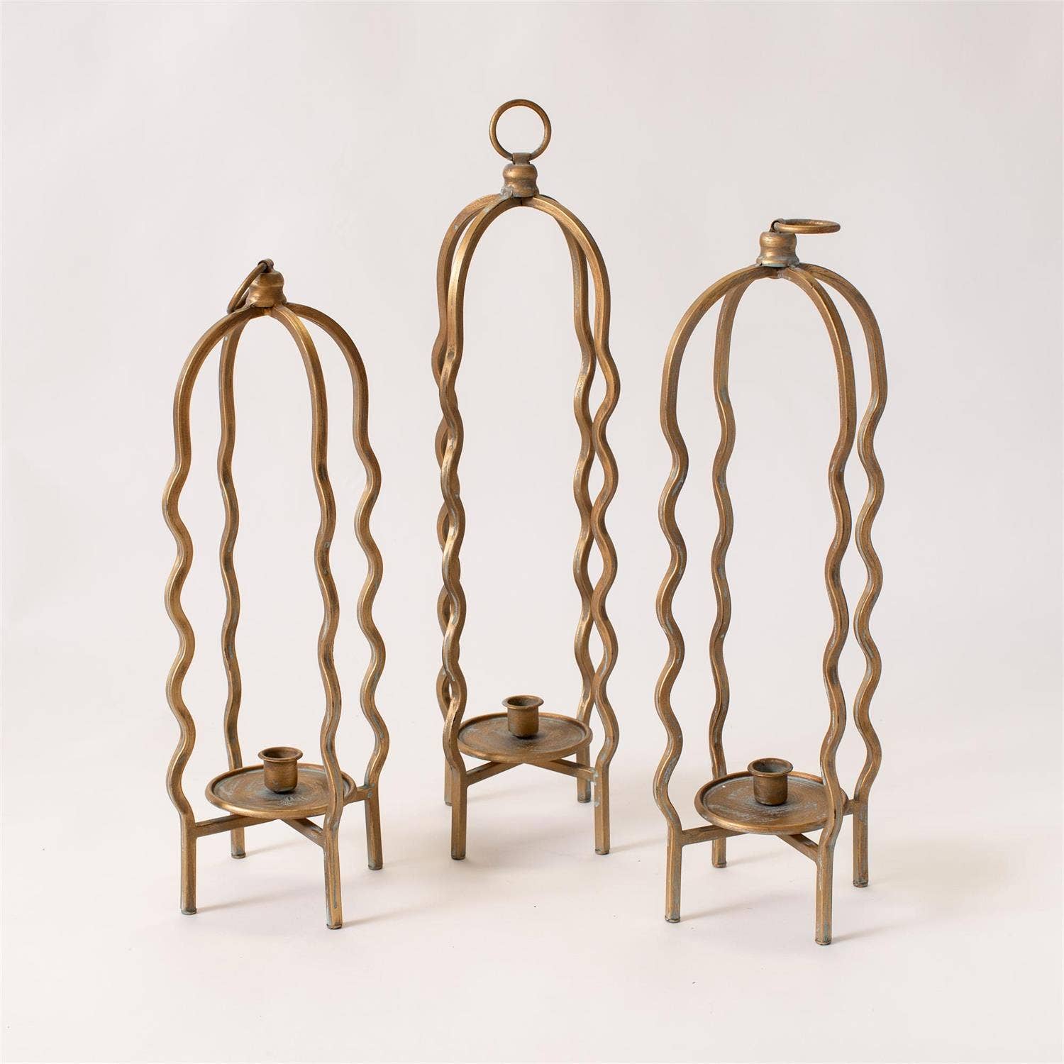 Candle Holder - Wavy Cage, Gold Finish