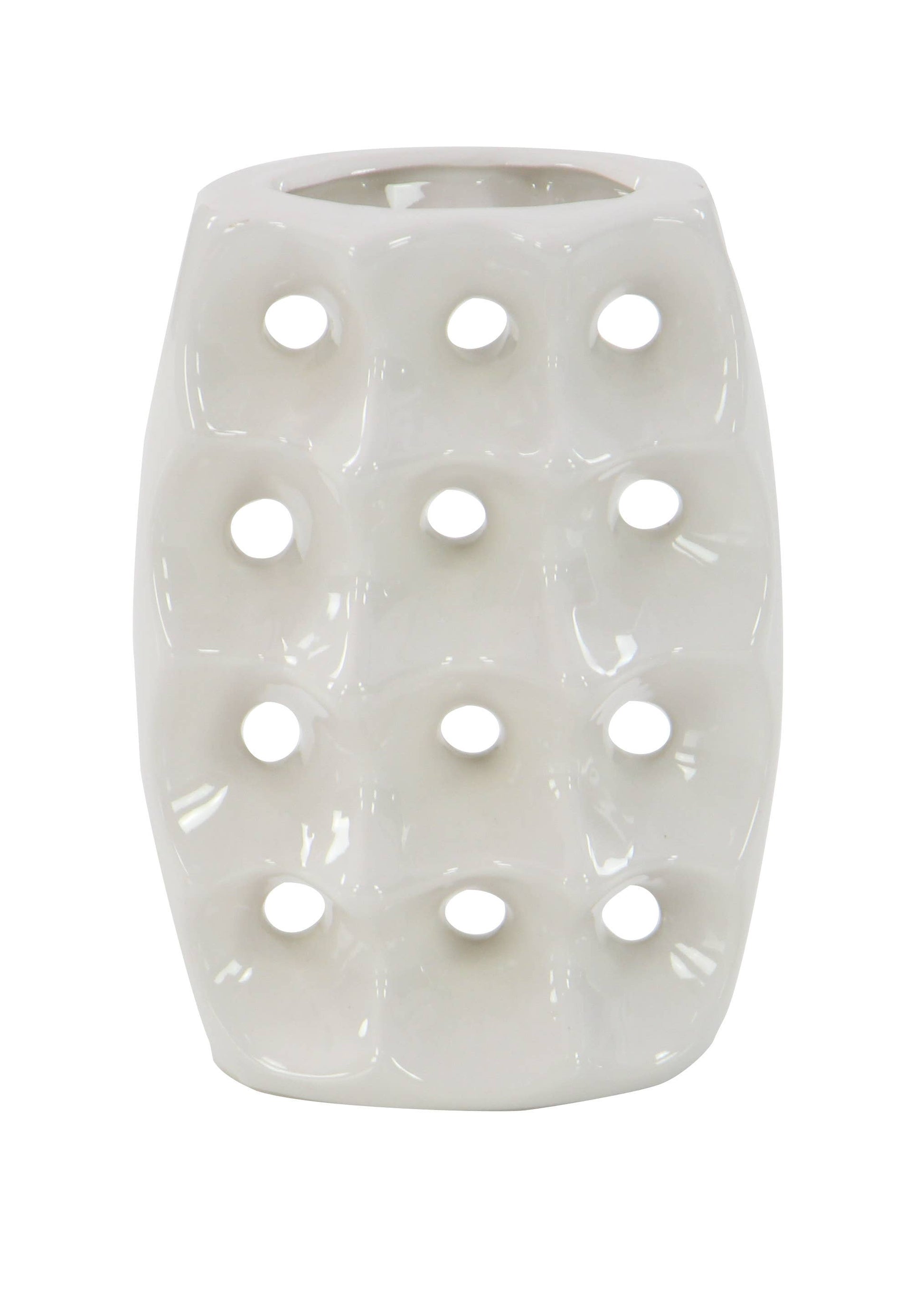 Display a bundle of your favorite faux flowers or display as modern accent decor on your table or shelf. Designed with felt or rubber stoppers at the base that prevent scratching furniture and table tops, as well as sliding around. The slender design of this vase makes it ideal to hold a single flower stem, or as a decorative accent piece in your home. Suitable for indoor use only. TThis white colored stoneware vase comes as a set of 3. Modern style. Vases have 1.50 in, 2.70 in, and 3 in mouth openings.