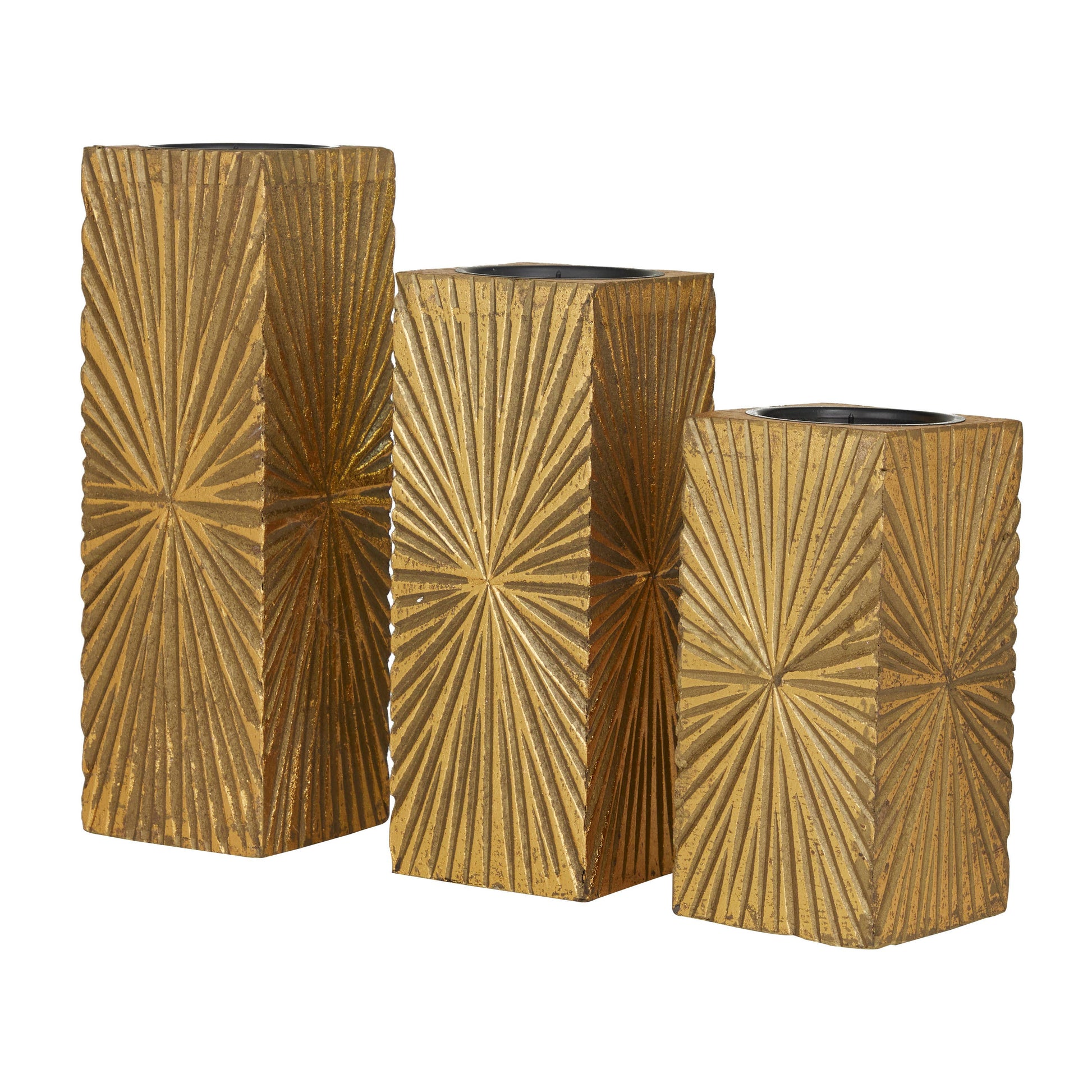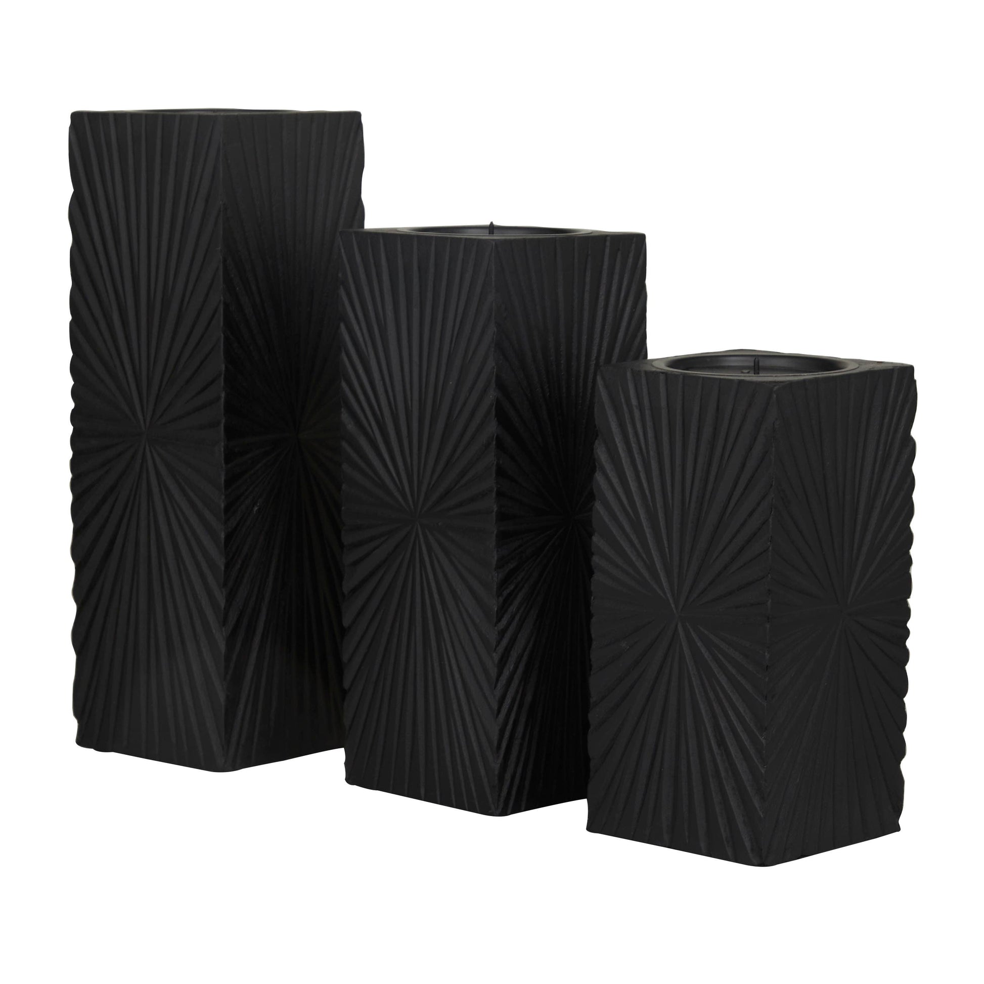 Give your space a radiant illumination with these beautifully crafted candle holders. Made with a sturdy base, it is perfect for creating an elegant atmosphere at your table top or mantel. Glam up your kitchen islands and dining room tables with these starburst candle holders and get playful with it by adding colored wax candles on top. Designed with felt or rubber stoppers at the base that prevent scratching furniture and table tops, as well as sliding around. Can hold 3 pillar candles, not included. This item ships in 1 carton. Mdf candle holder makes a great gift for any occasion. Suitable for indoor use only. This item ships fully assembled in one piece. made in India. Contemporary style. Embrace artistic expression with a style that highlights bold designs with sleek lines, neutral elements, and a minimalist aesthetic