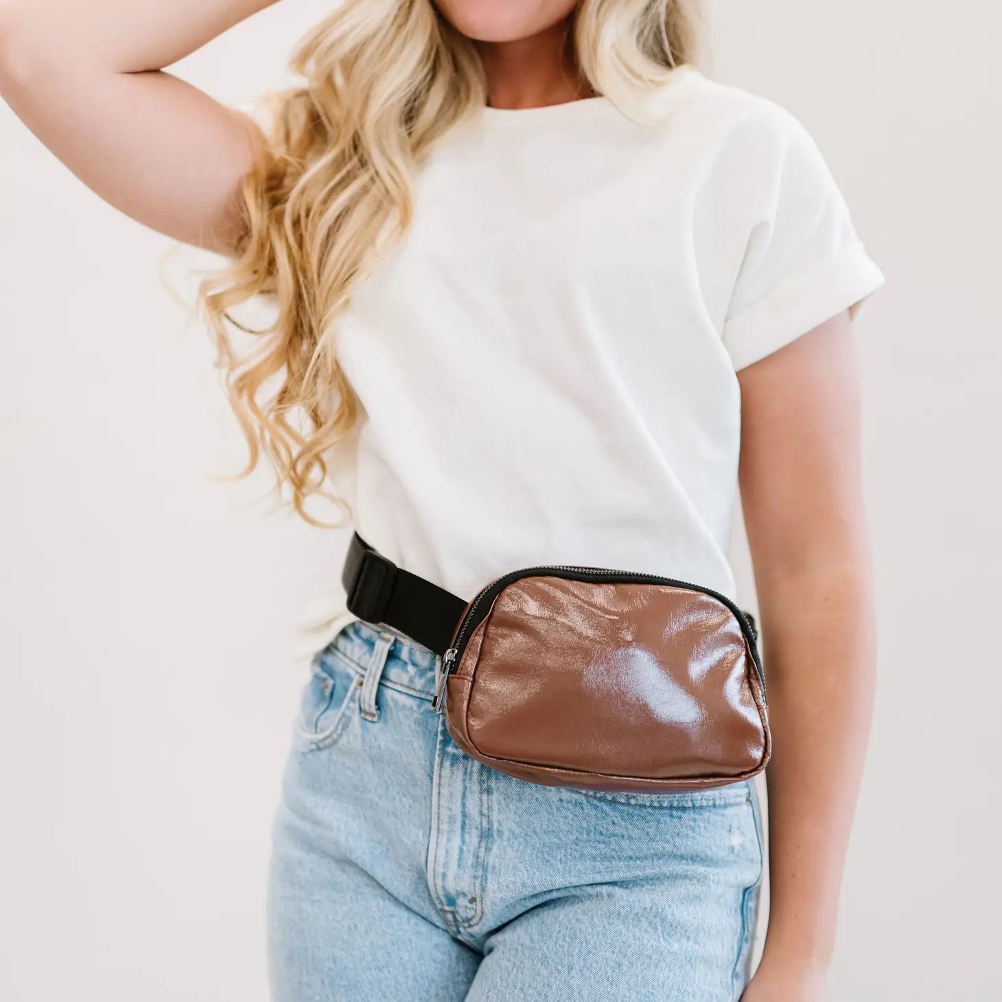 This buttery-soft vegan leather belt bag ticks all the boxes. The Payton has plenty of pocket space so that you can stow all your essentials and reach them with ease. Keep your keys, wallet, and phone secure while running errands, going to the gym, a day out with girlfriends, and more! Details: 7.25" w x 5" l x 1.75" d Strap: 36.5", bag and strap are 44" when fully extended Exterior zippered pocket 1 long, 2 small mesh interior pockets Nylon straps, polyester interior Dark Silver Hardware