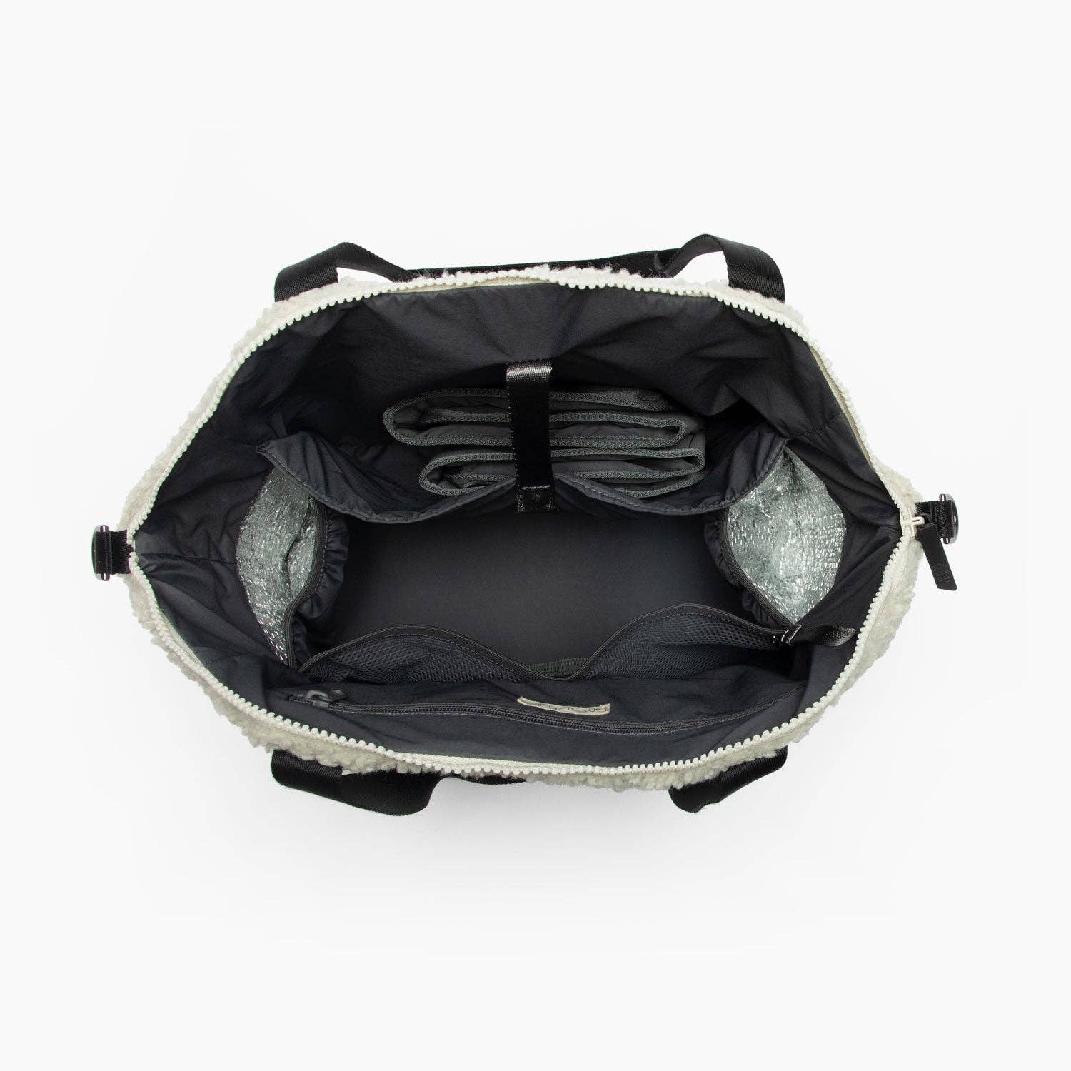 Introducing the Teddy Tote Backpack! Inspired by athleisure and everything in between, this bag is an essential for parents on-the-go. With a spacious main compartment you can pack all the essentials for your little one. The stylish sherpa material makes this bag an essential in your wardrobe! You can also wear it three ways: as a backpack, crossbody, or tote.