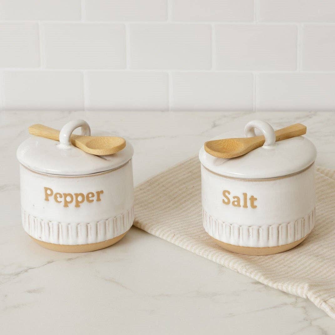 Fluted Edge Salt And Pepper Cellar With Spoons