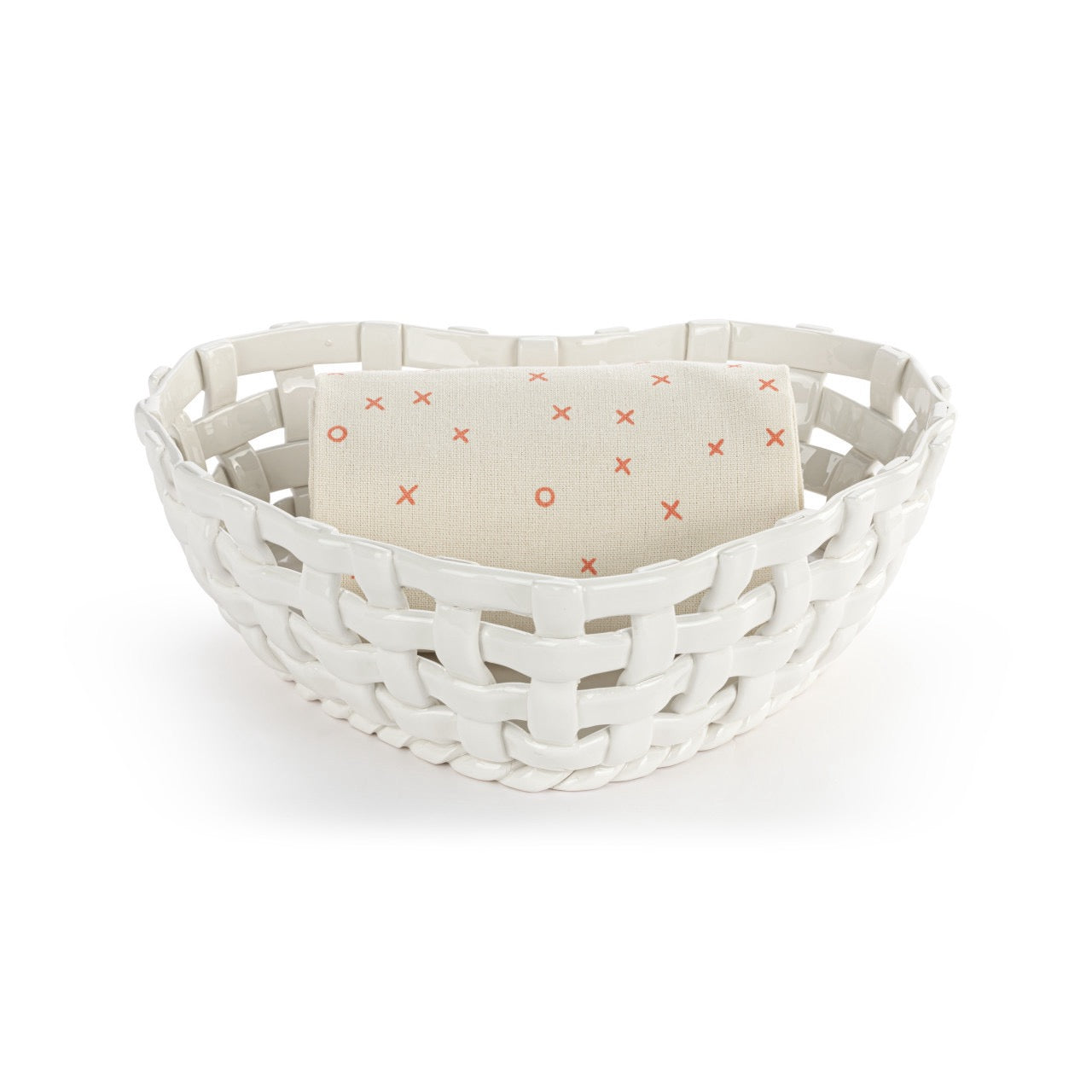 Whether it's a Sunday family dinner or scooping up sweet and salty snacks at the kitchen island, spending time together eating, laughing and eating a little more inspires real moments that become savored memories. This essential collection, including the Heart Bread Basket with Towel, pairs fun phrases and tasteful styling with heirloom-quality that make the most casual gatherings feel like a celebration.