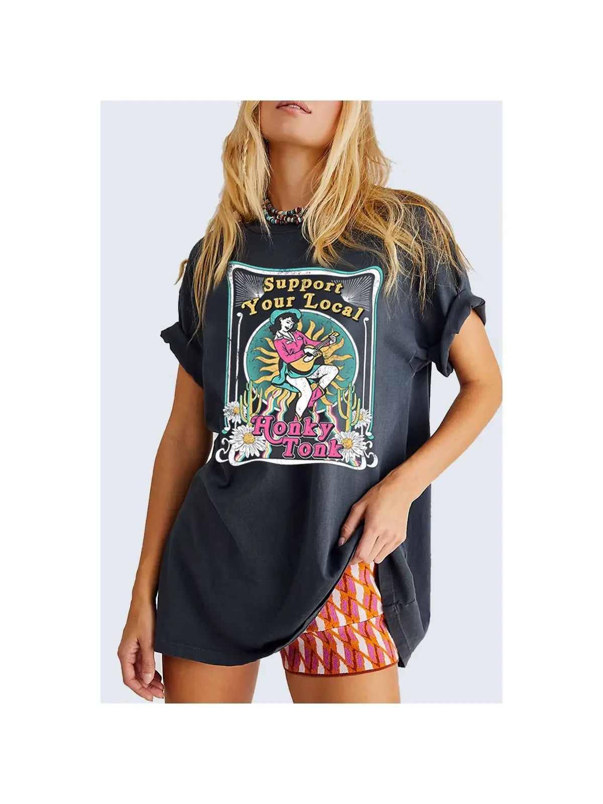 HONKY TONK OVERSIZED GRAPHIC TEE: Mineral Black