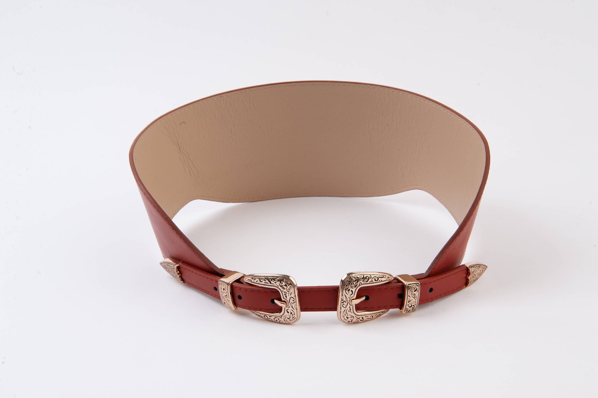 DOUBLE WESTERN BUCKLE CORSETTE BELT - RUST