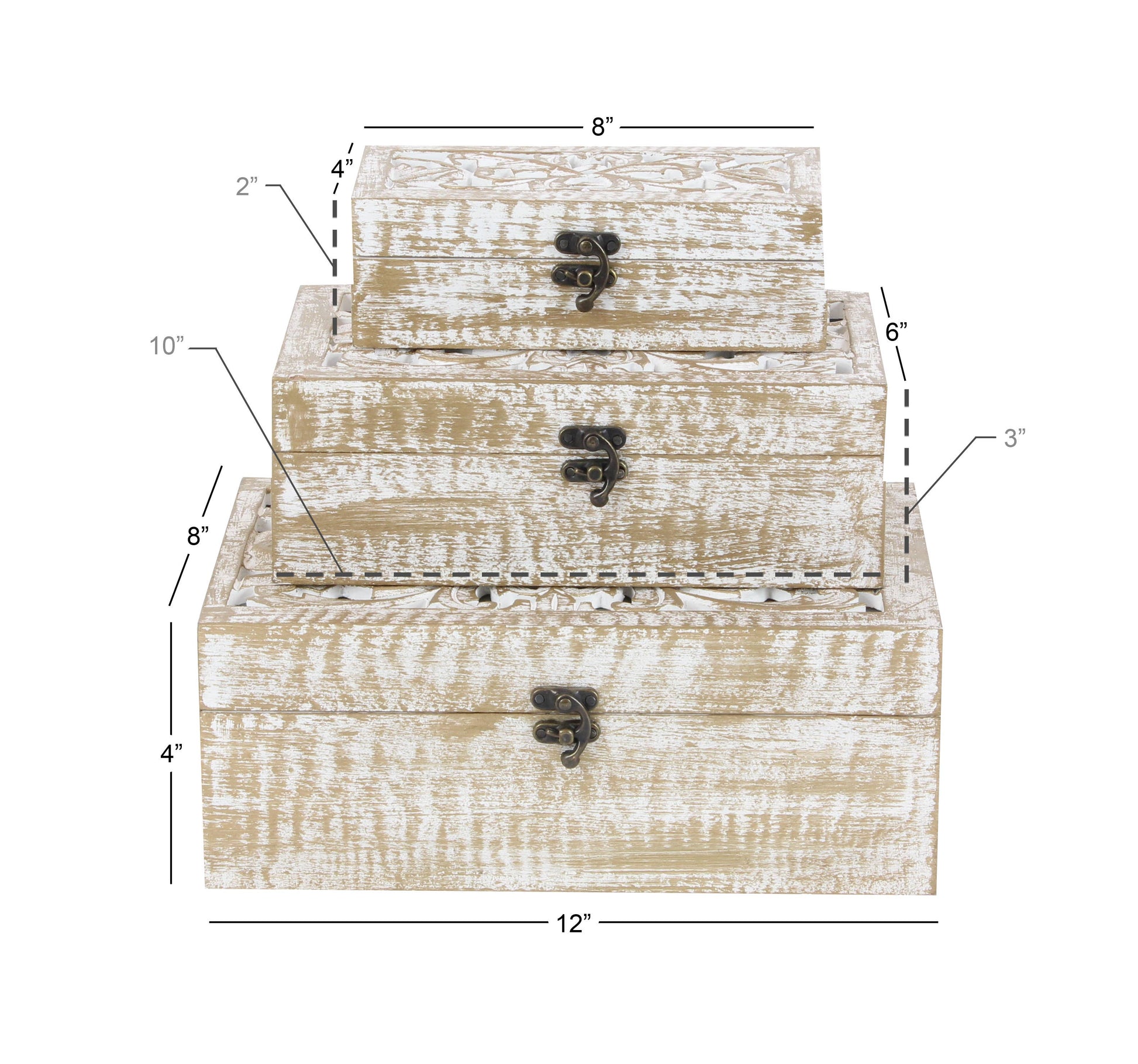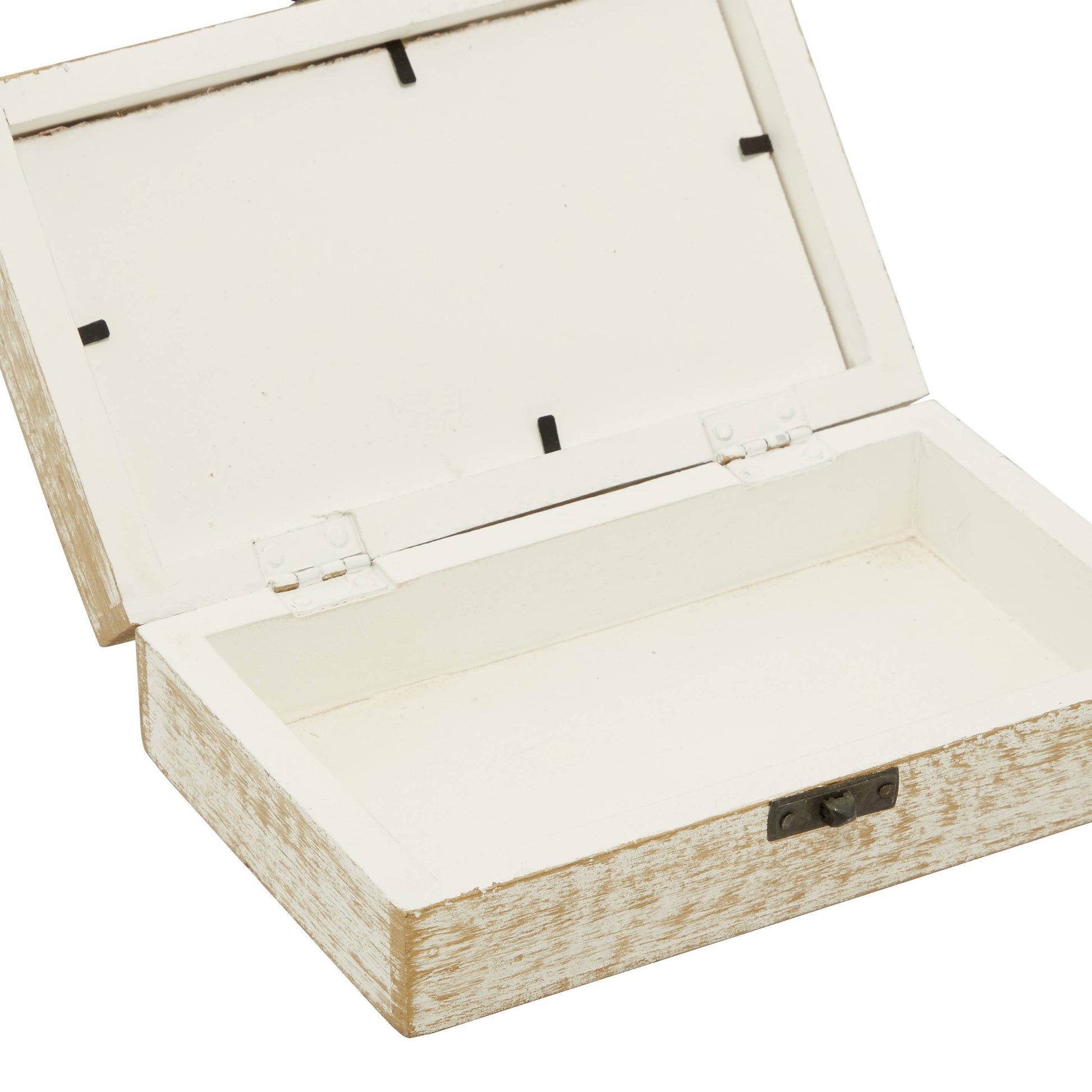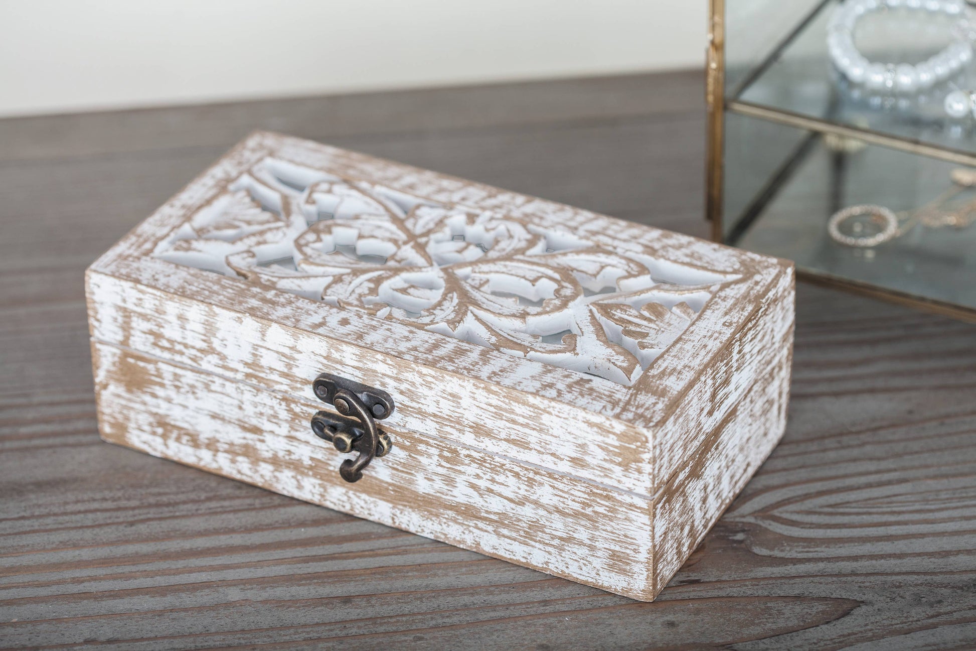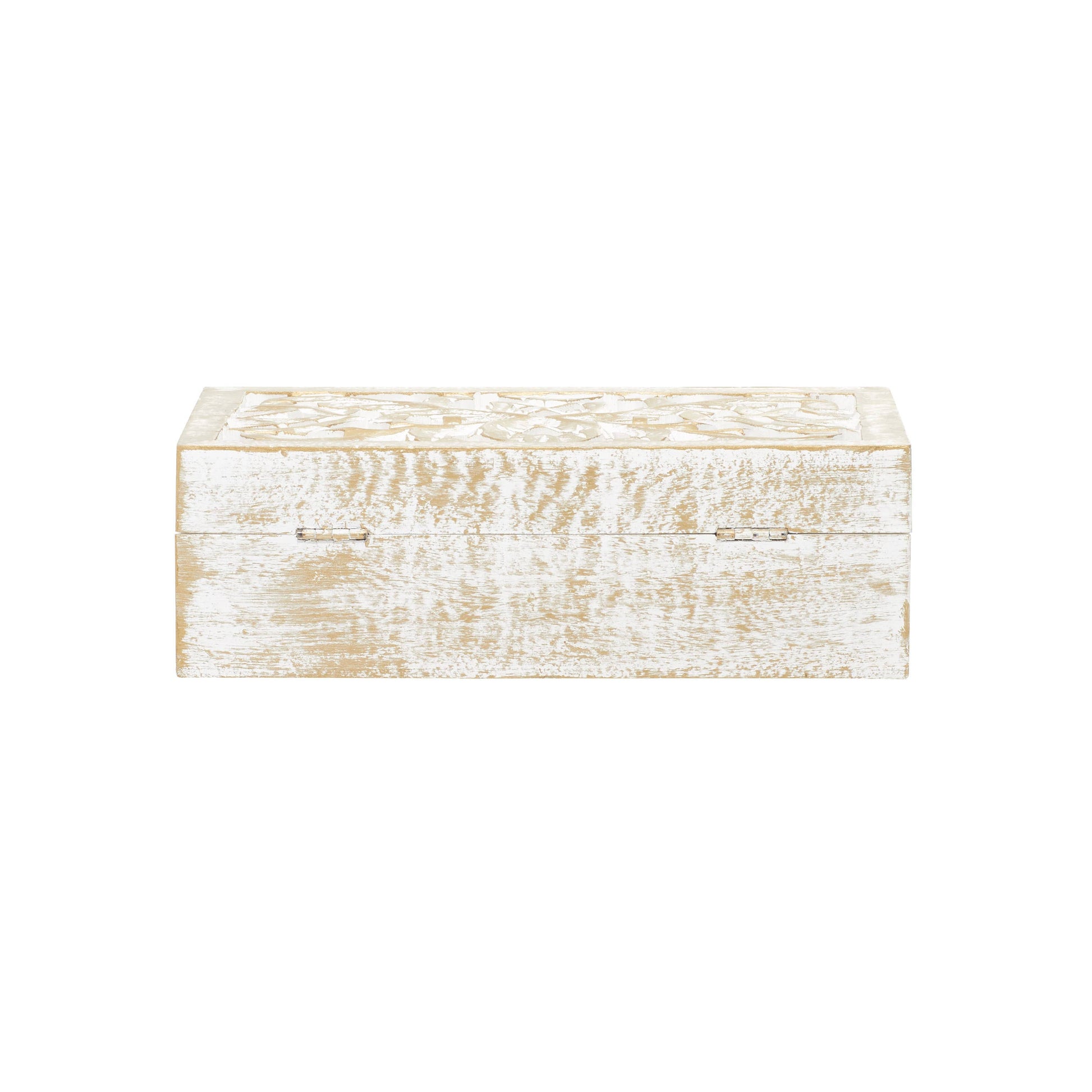 Perfect way to add depth and texture to your surface space with this compact and discreet box. A practical yet stylish upgrade that instantly elevate the look of your room. This floral set of 2 decorative keepsake boxes can be used together or separately to store personal belongings in the bedroom or to enhance table displays in the living room. Designed with felt or rubber stoppers at the base that prevent scratching furniture and table tops, as well as sliding around. Mango wood box makes a great gift for any occasion. Due to the handmade nature of this item, no two will be alike, there will be slight differences in shape, size, and color. Suitable for indoor use only. This item ships fully assembled in one piece.