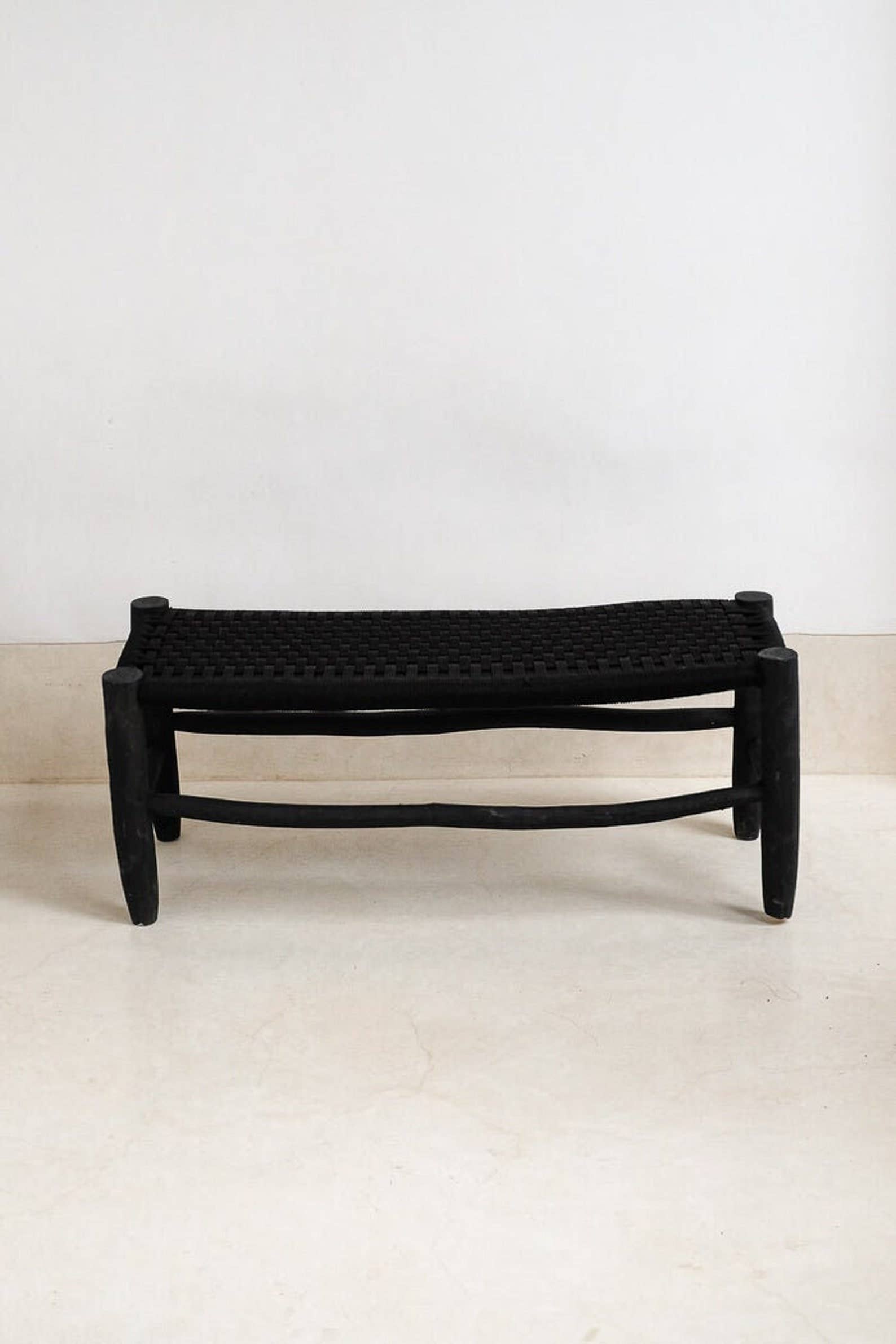 Moroccan bench solid wood braided in thread unique pattern