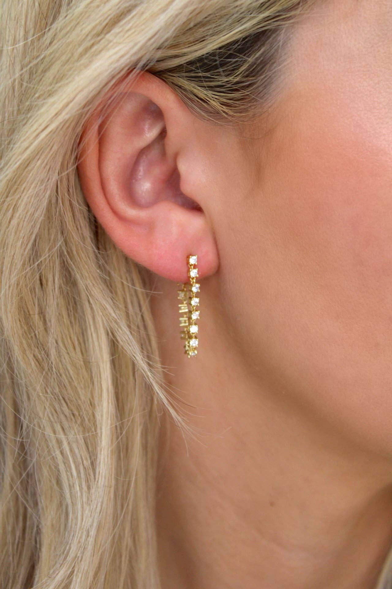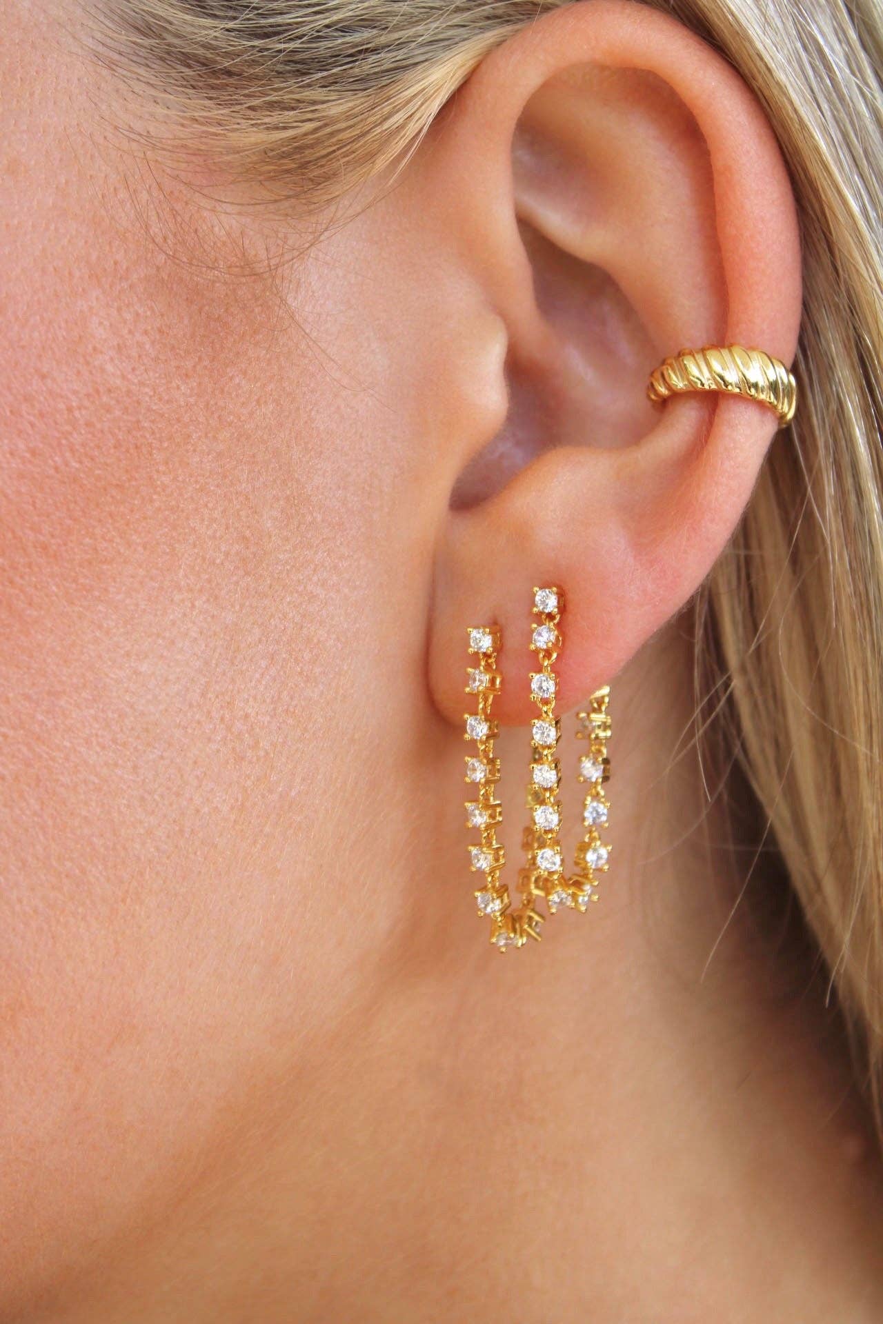 We are loving the gorgeous sparkly details on the Phoenix chain earring. So perfect for wearing alone and layering. -18k gold plated (925 sterling silver base) -one pair (as shown in photos layered with 2 pair stacked) -white zircon detail -lead and nickel free