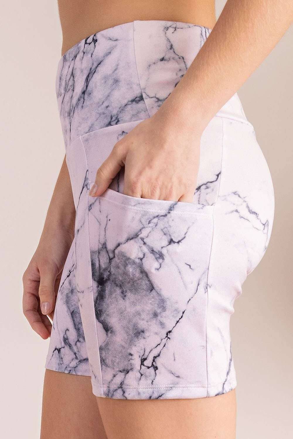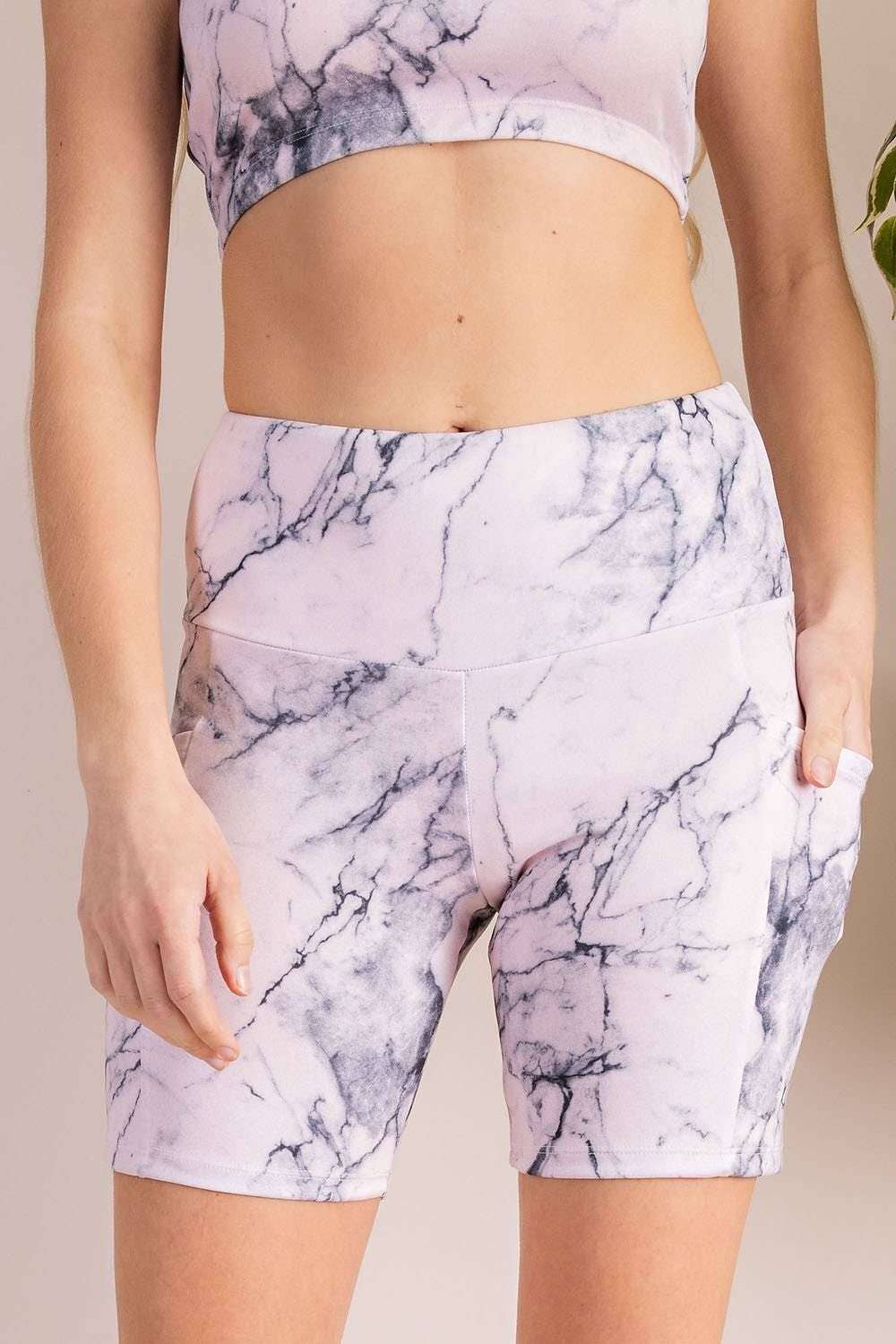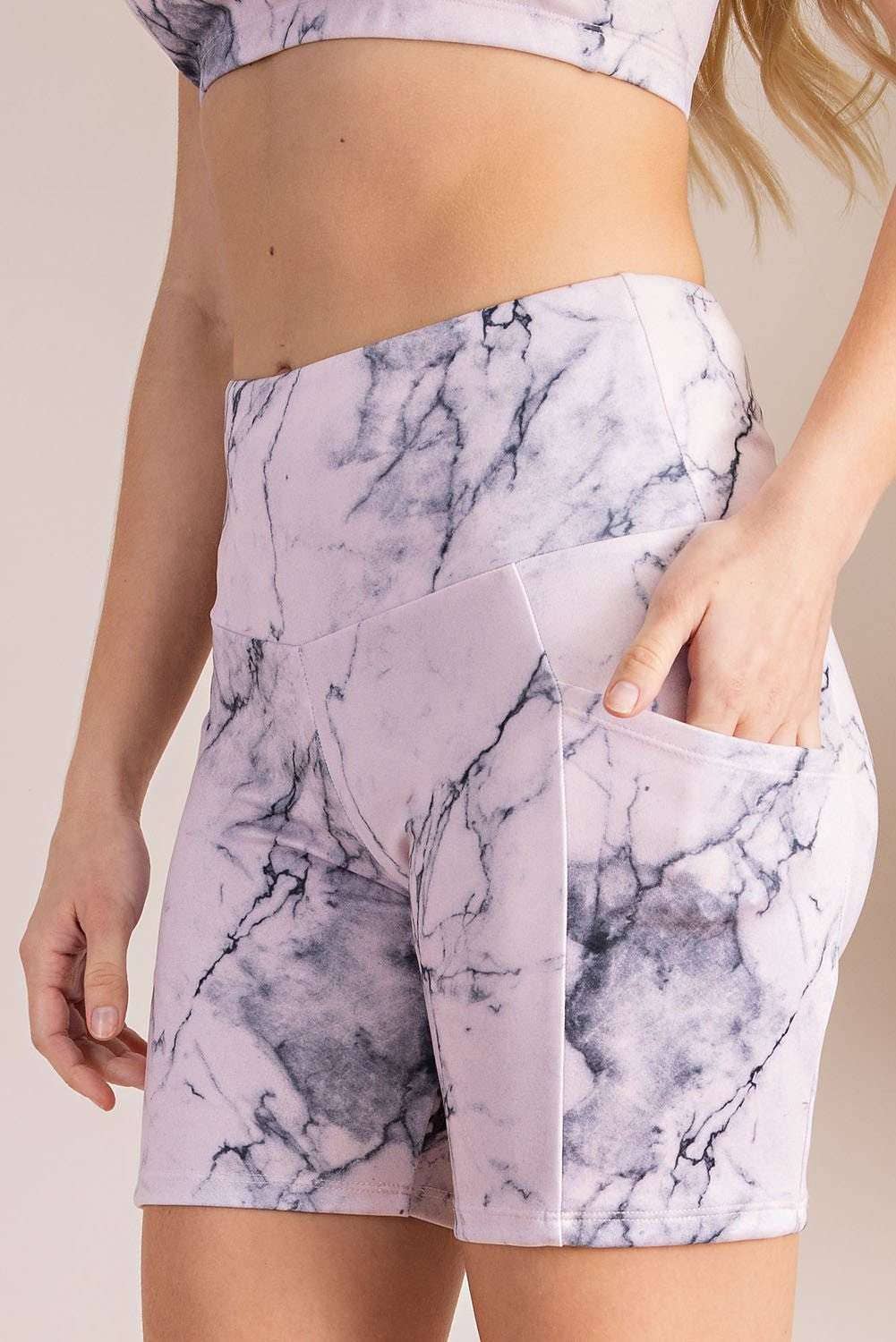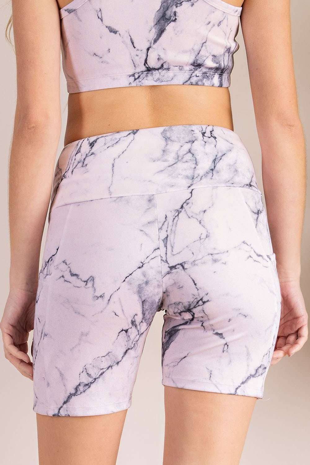 MARBLE PRINT ACTIVEWEAR BIKER SHORTS WITH ELASTIC WAISTBAND