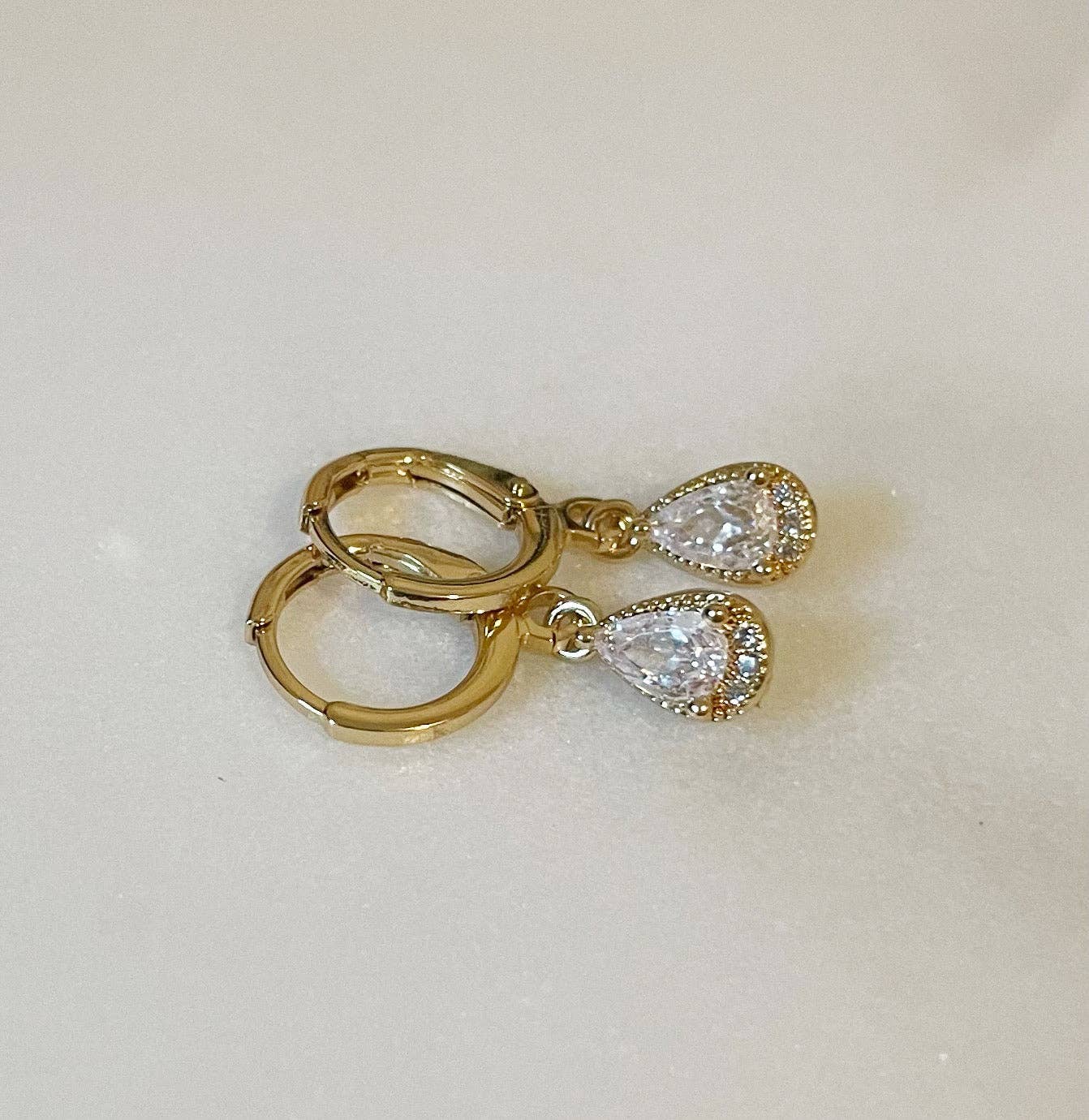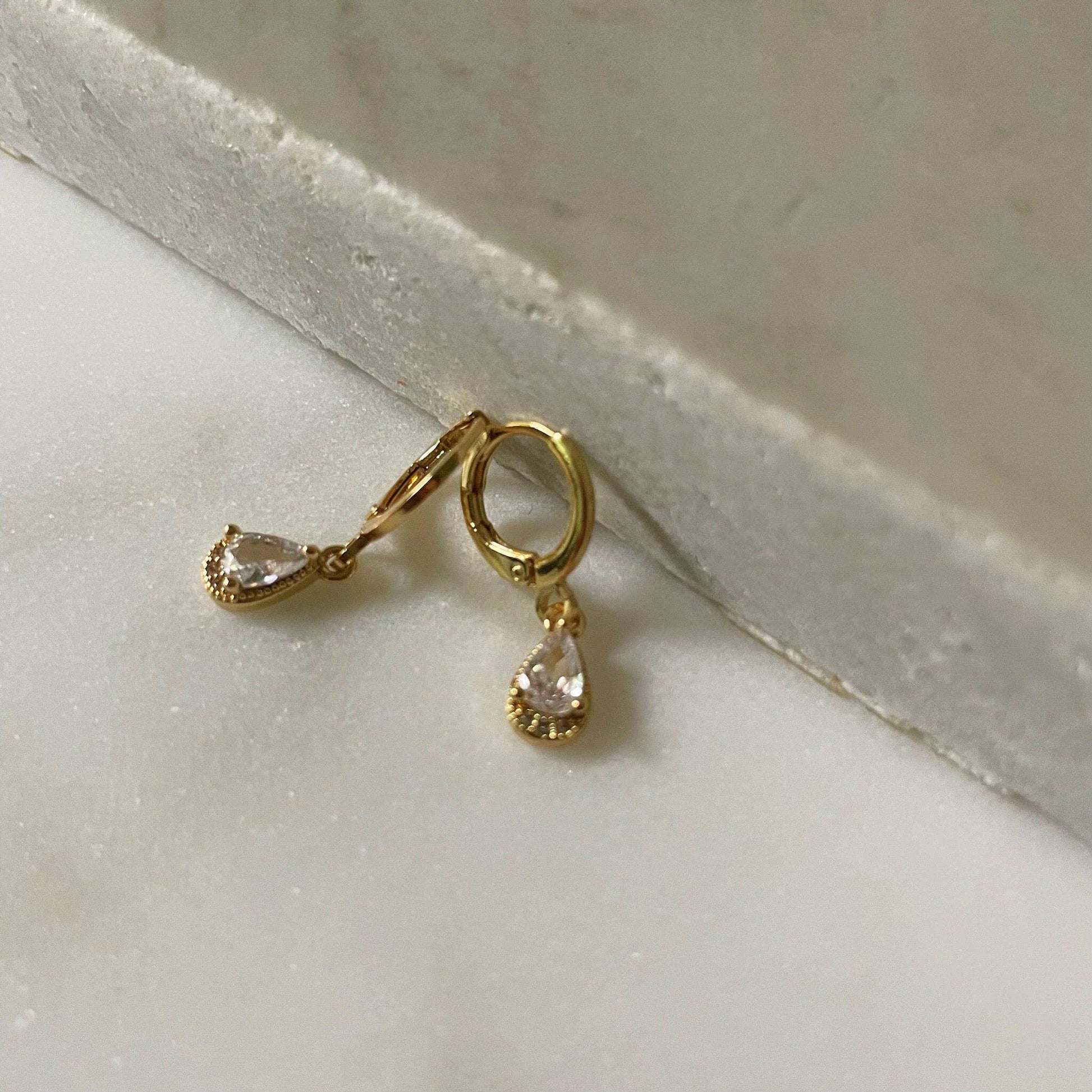 Save Your Tears Huggies. Gold Filled Drop CZ Earrings
