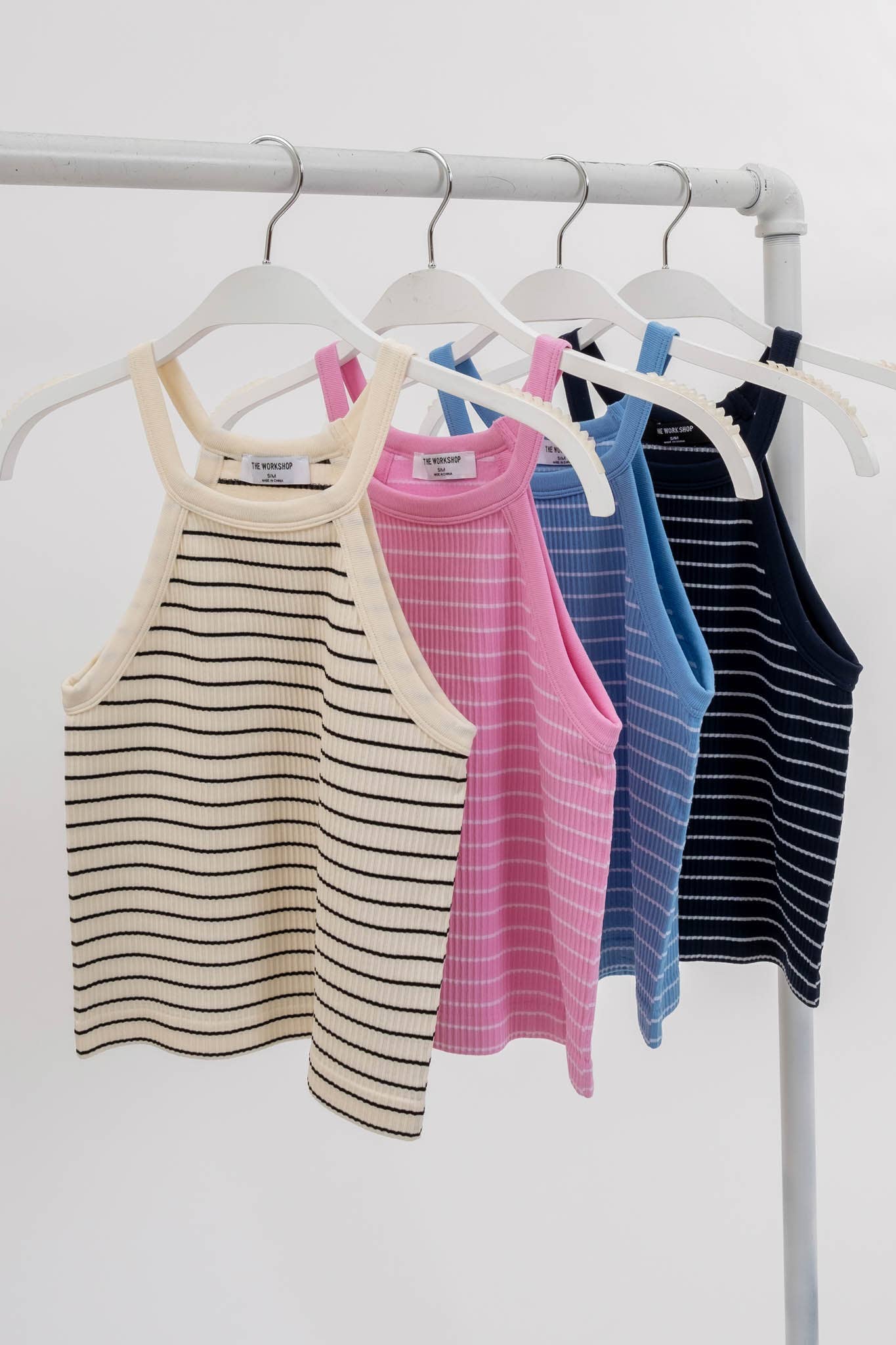 STRIPED ROUND NECK KNIT TANK: PINK