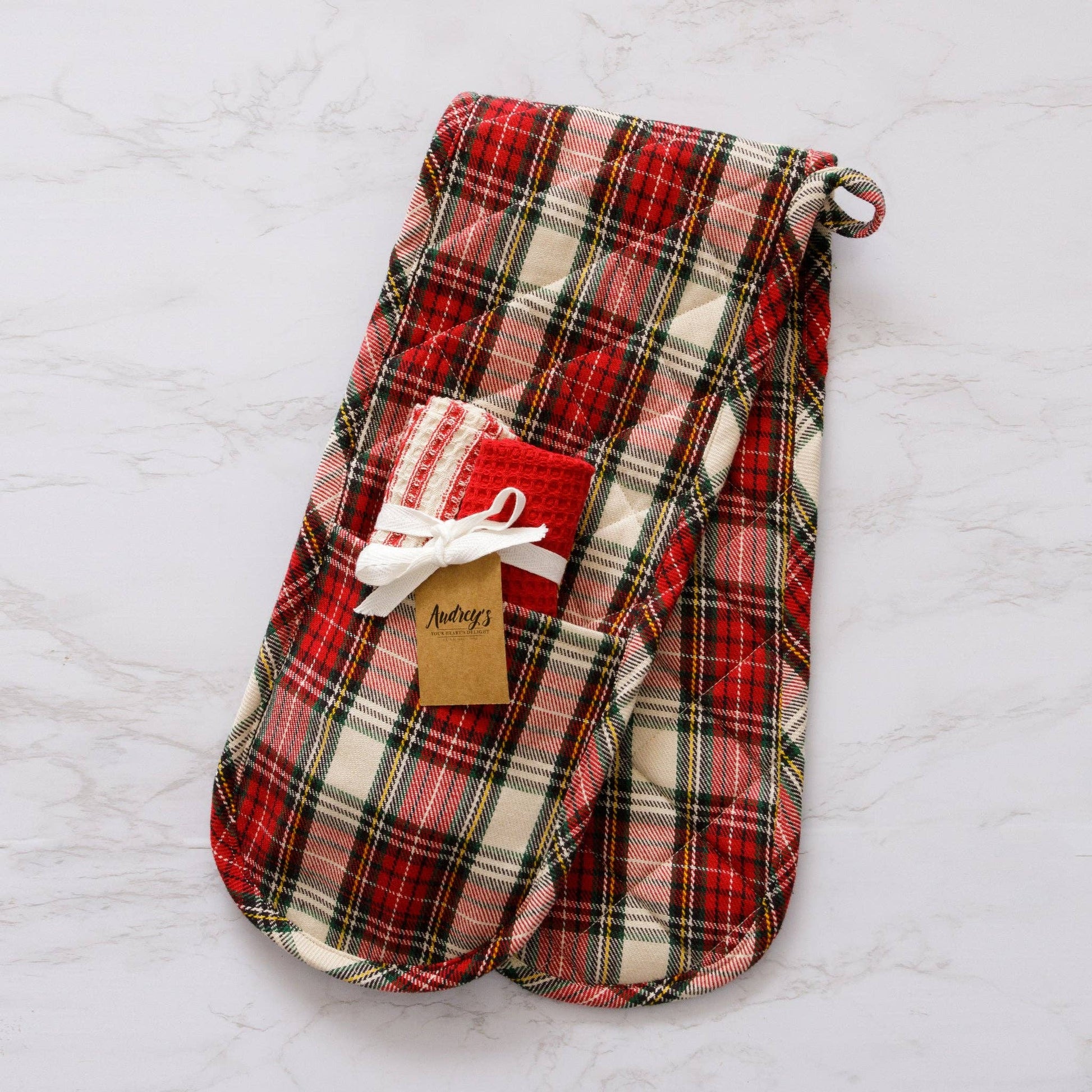 Tartan Double Oven Mitt Gift Set With Dish Cloths