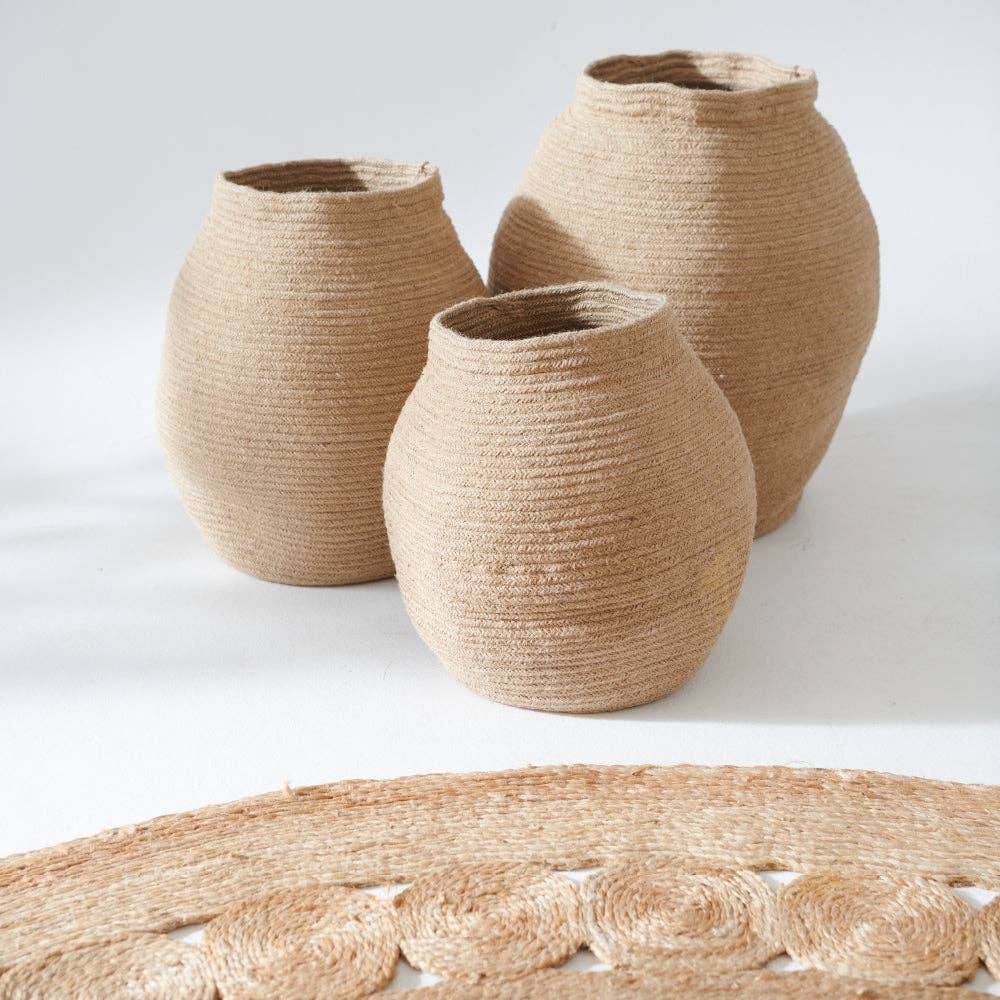 The decor accent you were searching for to suit a variety of colour and texture combinations. Lovingly hand woven with 100% jute, hree different sizes. Showcase these jute floor baskets in your home as stand alone pieces or add some beautiful dried flowers for a subtle pop of colour.
