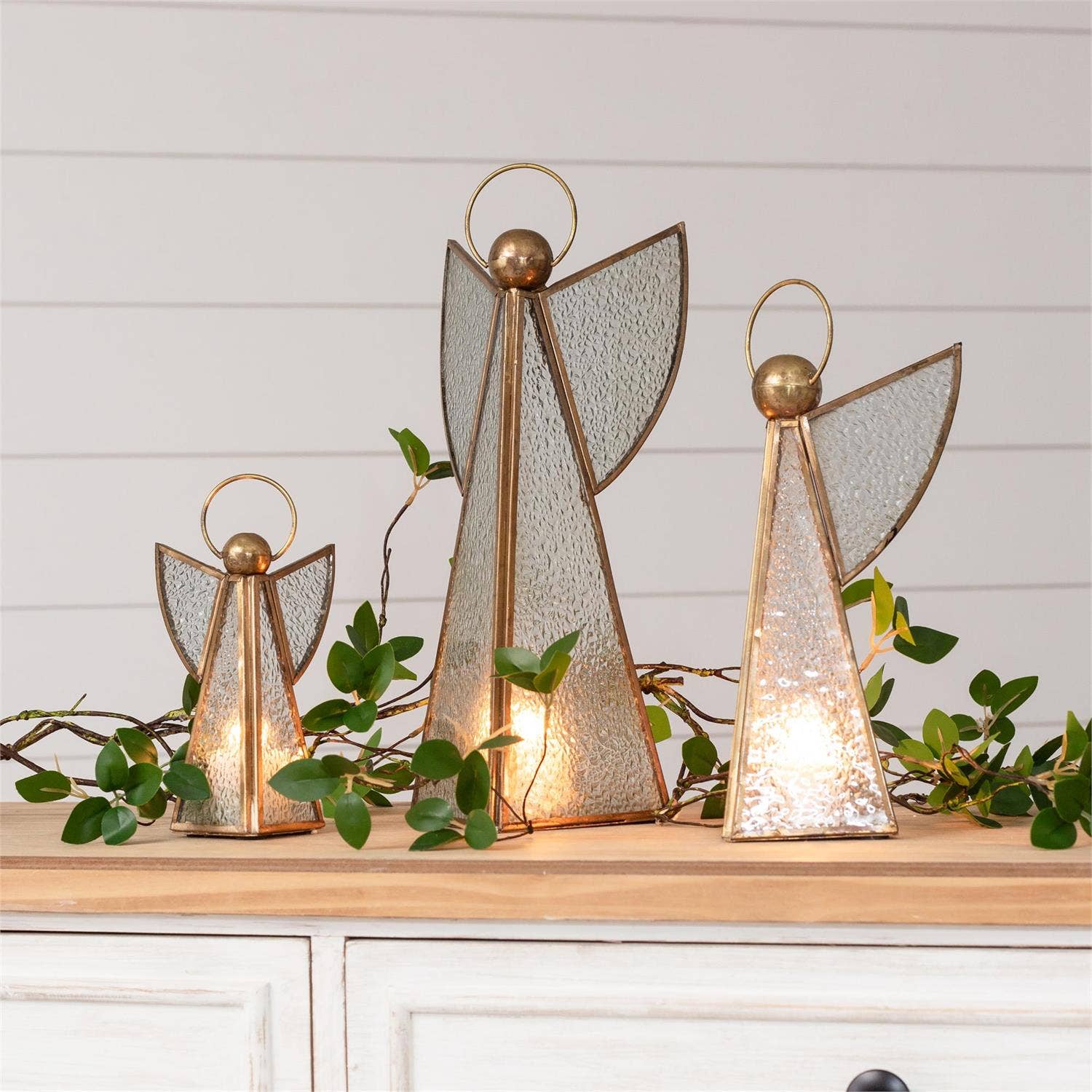 Glass, Brass | Candles Not Included 13.5 H x 6 W x 5.5 D, 10.5 H x 5 W x 4.75 D, 7 H x 3.5 W x 3.75 D.