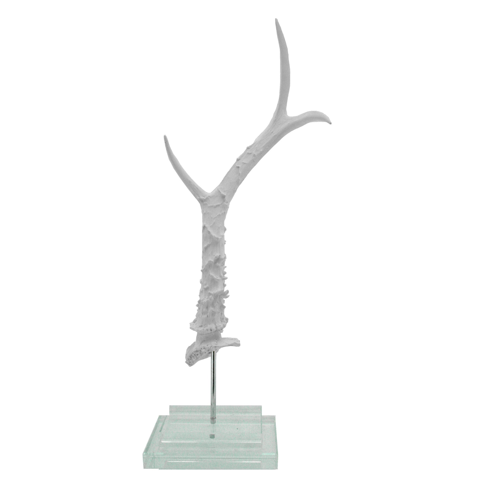 White Antler on Double Glass Base. Made of cast resin, glass and hand painted.