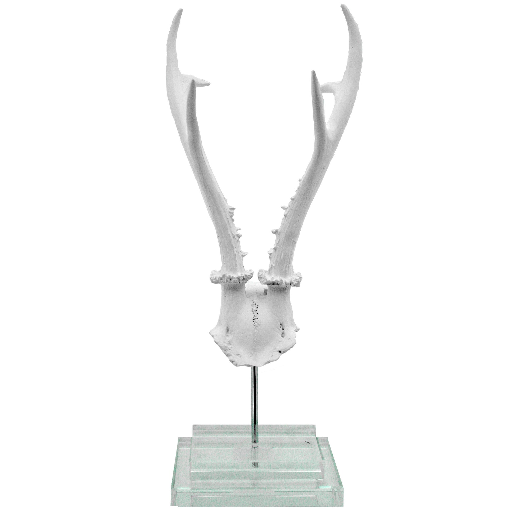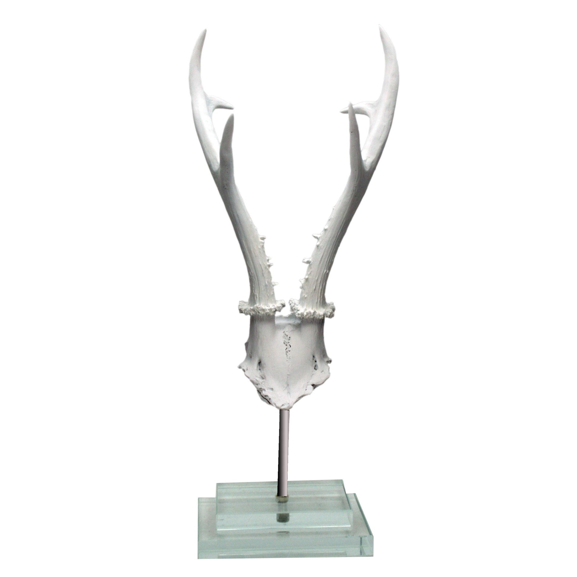 White Antler on Double Glass Base. Made of cast resin, glass and hand painted.