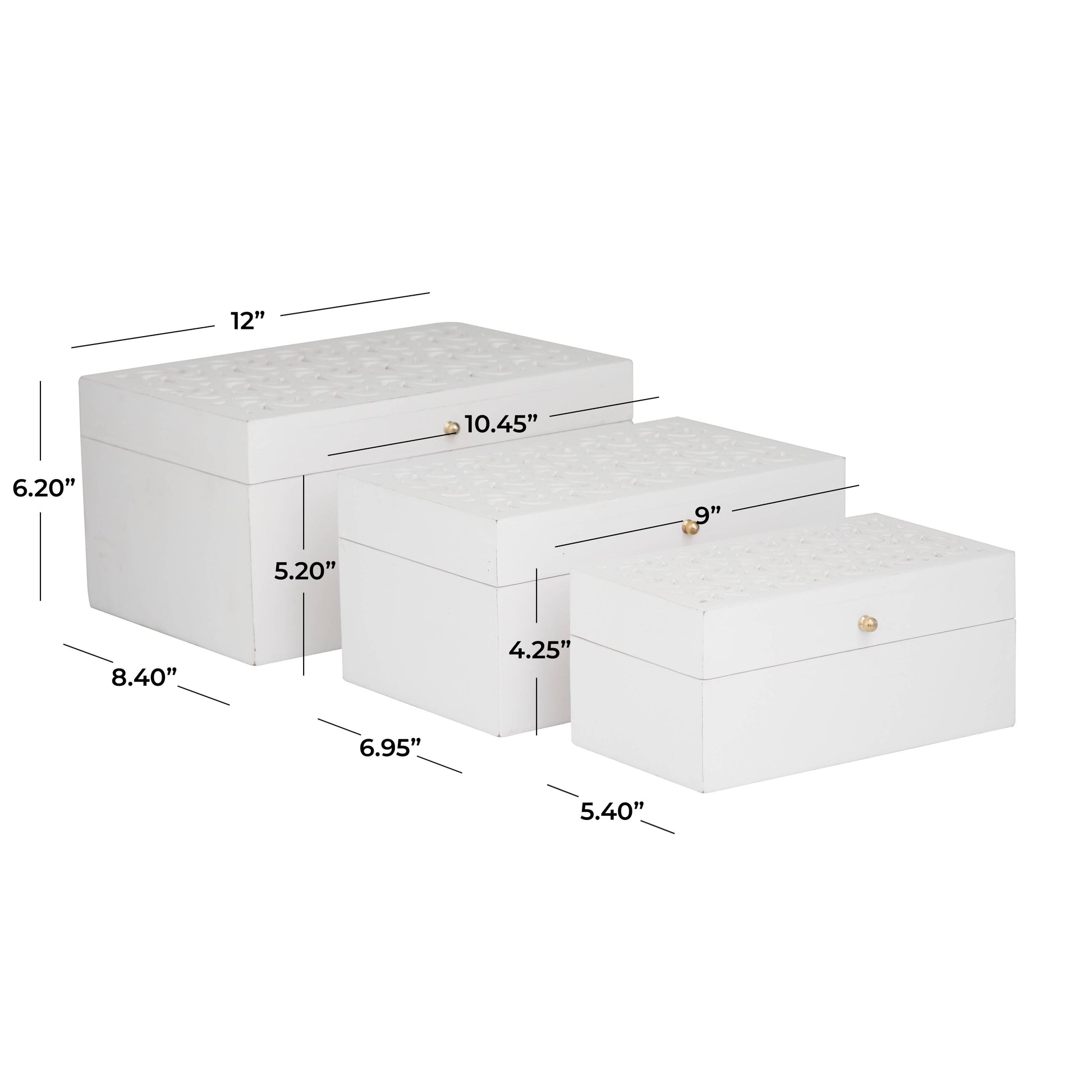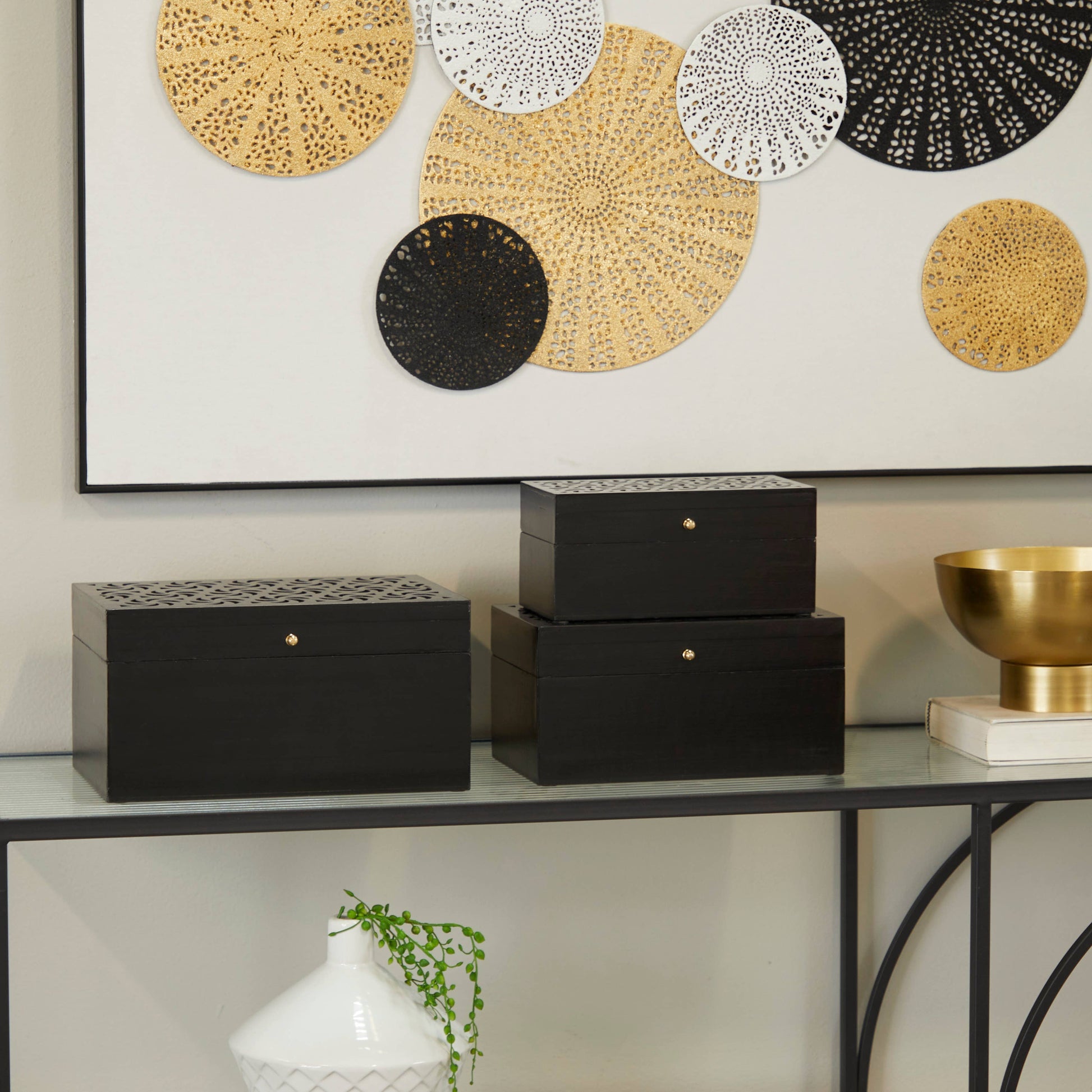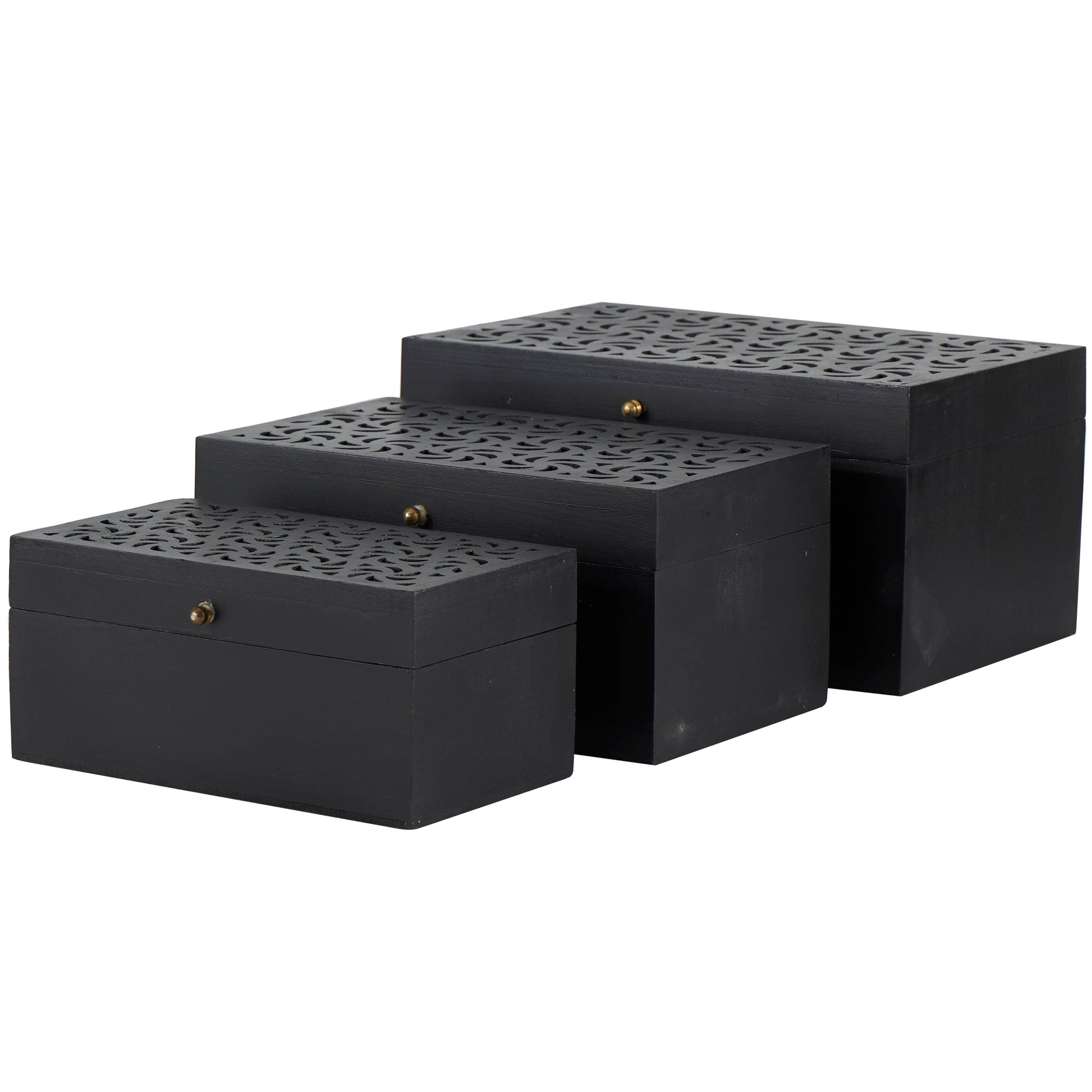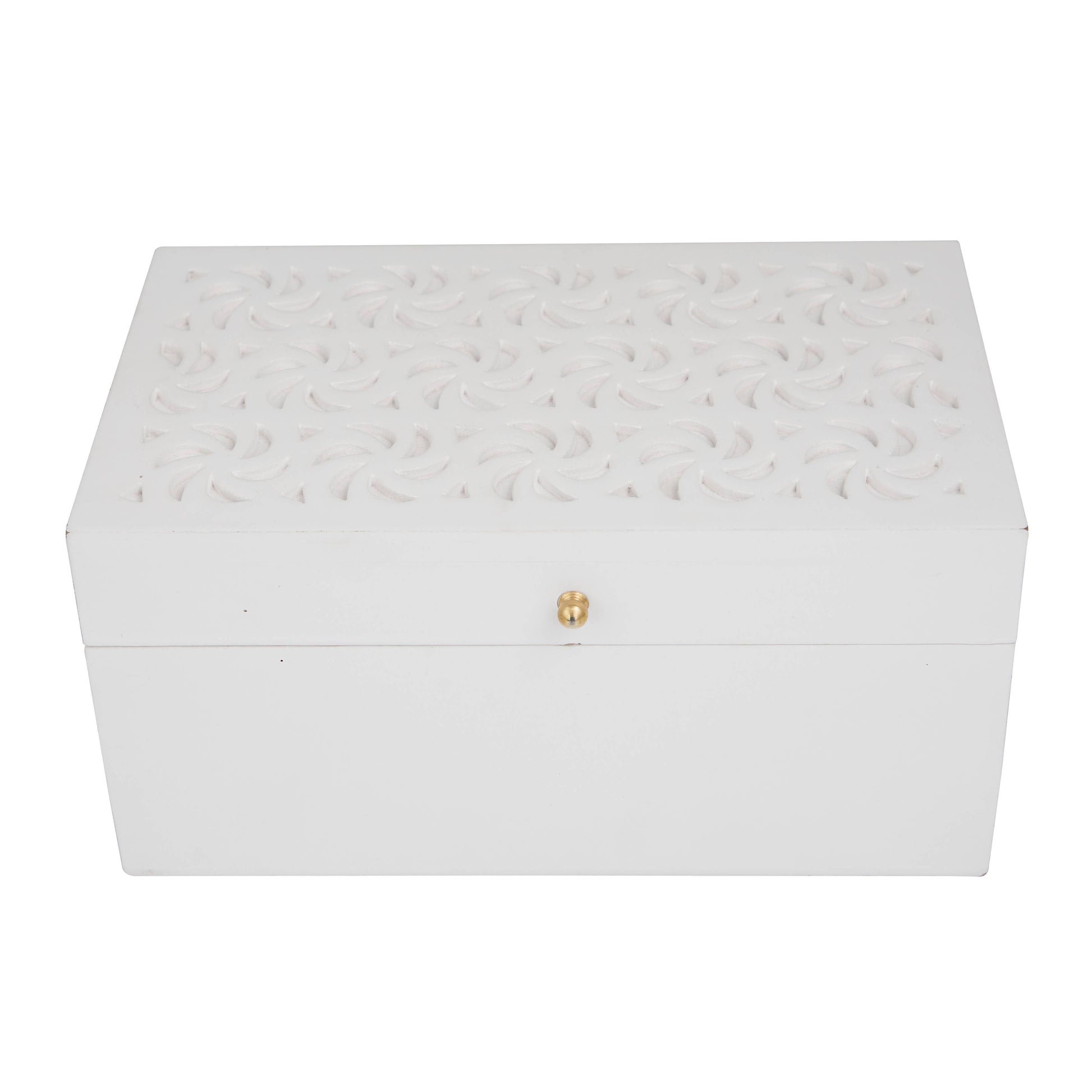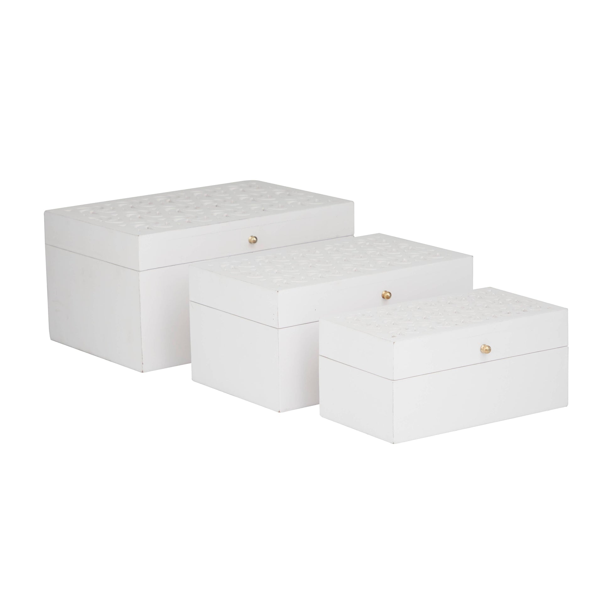 A perfect way to add depth and texture to your surface space with this compact and discreet box. A warm and welcoming way to elevate the look of your tablescape and complement your existing decor. Organize your most loved cosmetics and jewelry in style as you store them in these various sized wooden boxes that can complement any coffee or console table. Designed with felt or rubber stoppers at the base that prevent scratching furniture and table tops, as well as sliding around. Wood box makes a great gift for any occasion.