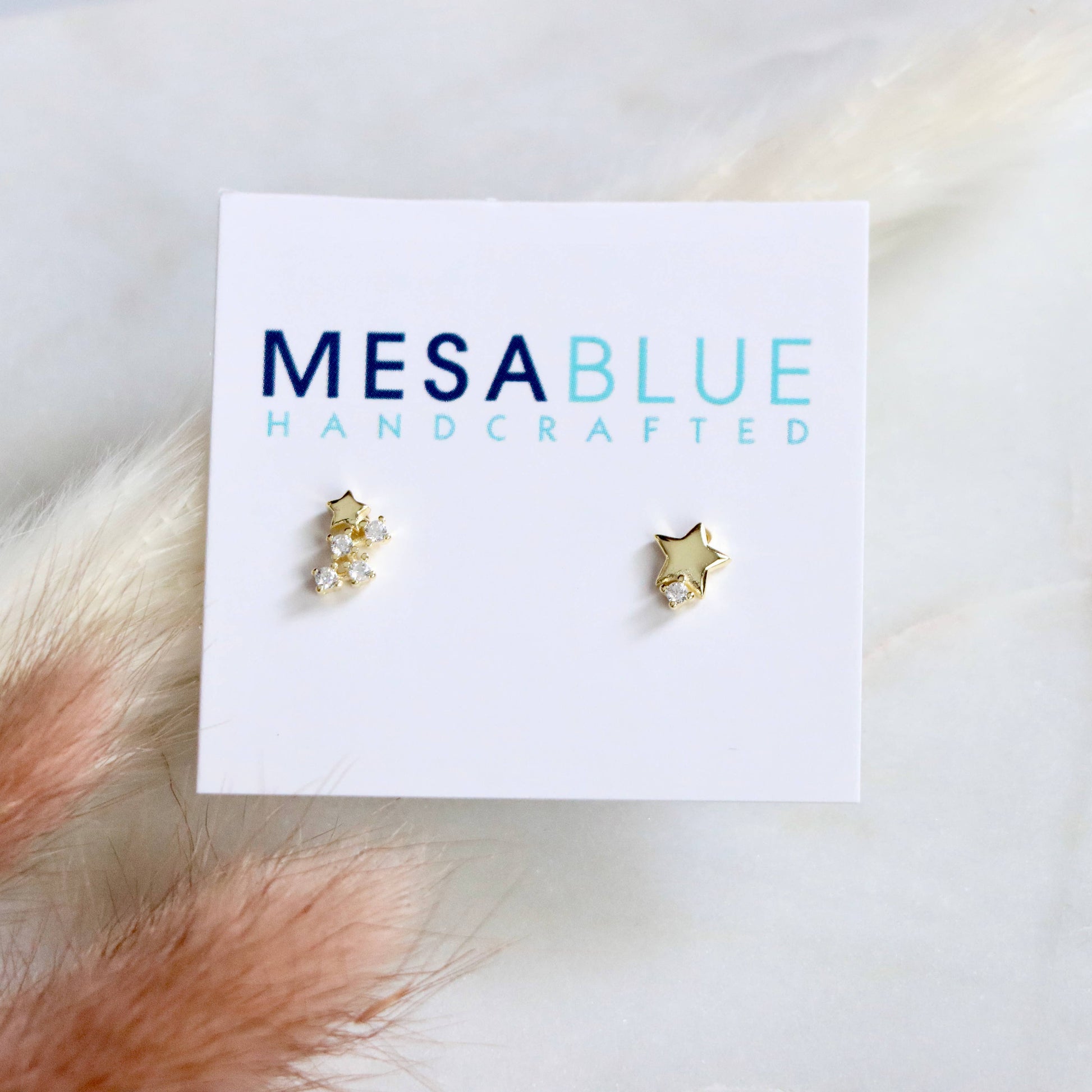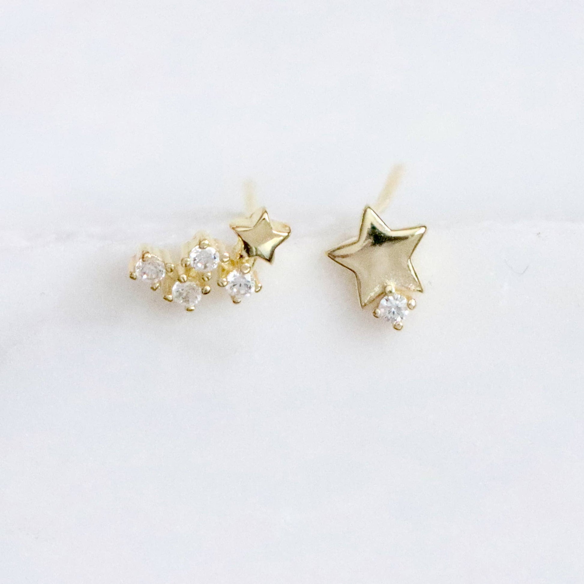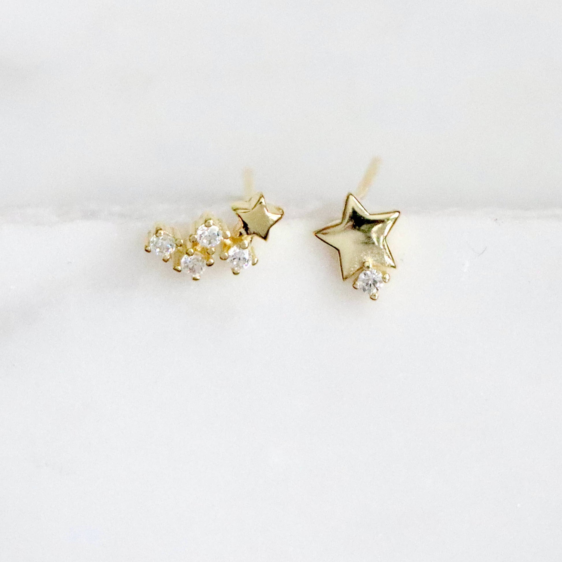 Zircon Shooting Star Earrings Details: • MATERIAL: 24K gold plated over sterling silver • SIZE: 5x7mm, 5x10mm